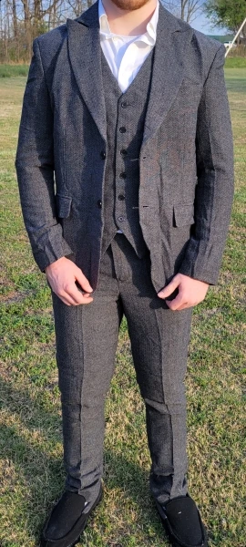 Костюм мужской из твида, пиджак, брюки и жилет, однобортный притале...