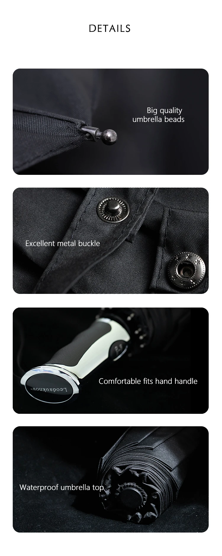 Отличный зонт за свои деньги (1471р.) На 12-й день получил на почте. С виду очень презентабельный. Есть не большой люфт. И ещё одна мелочь: если в раскрытом состоянии взять зонт в руки, именно правильно взять его, чтобы рукоятка точно ложилась в руку, то лямка фиксации зонта будет ровно перед вашими глазами. За это упущение в конструкции минус 1 звезда. Тем не менее буду заказывать ещё один зонт в данном магазине, так как зонтов должно минимум два (один дома, второй должен всегда быть на работе)