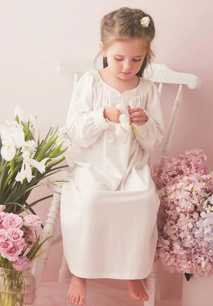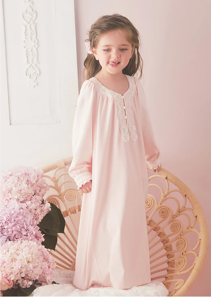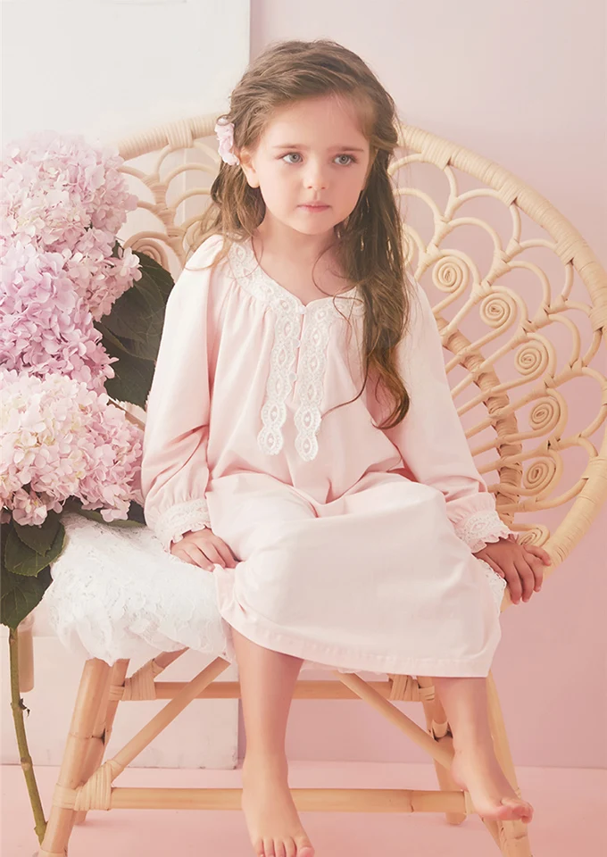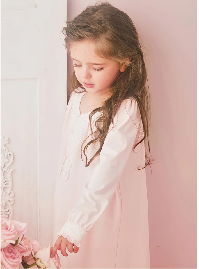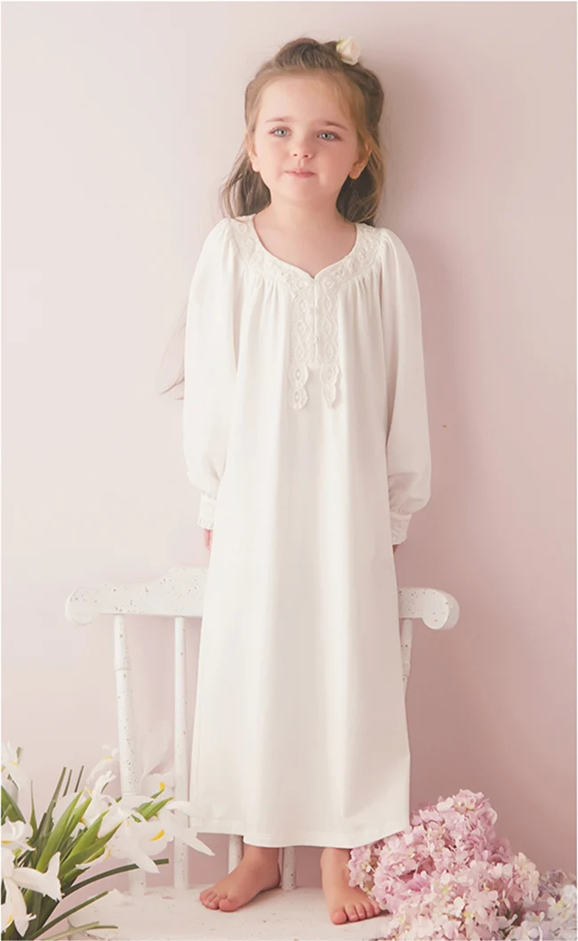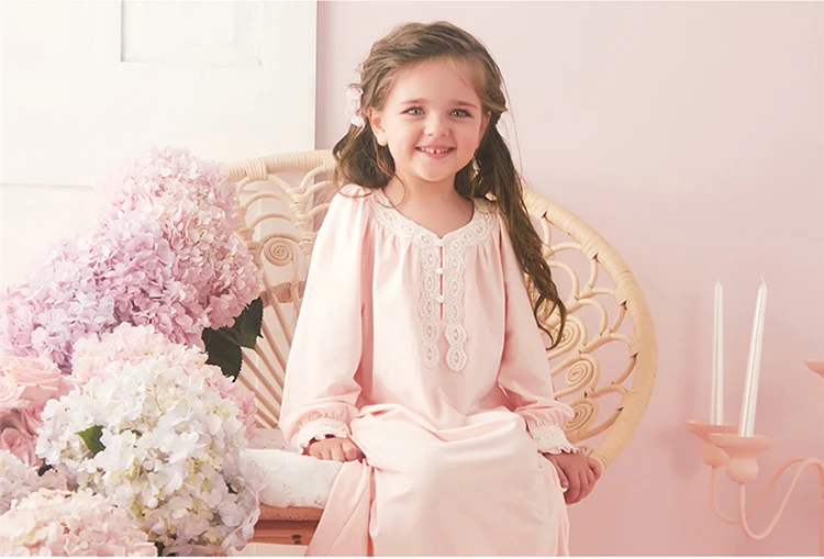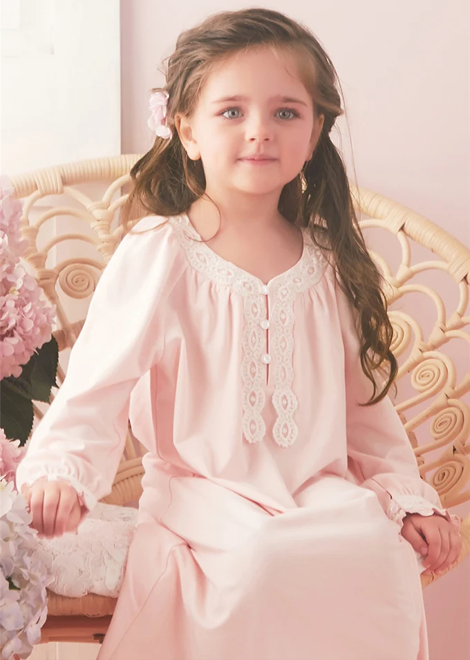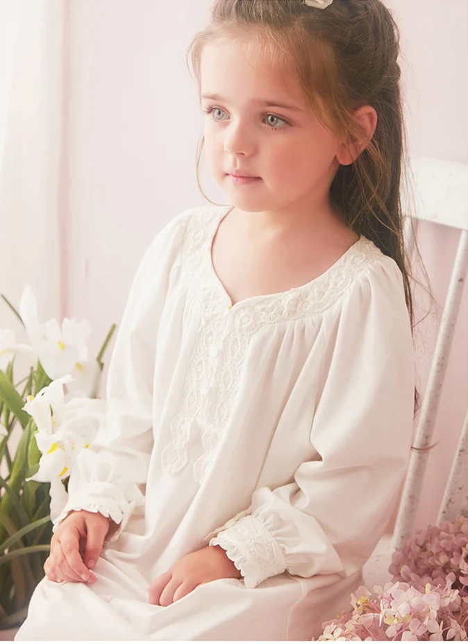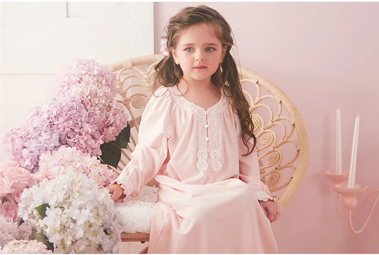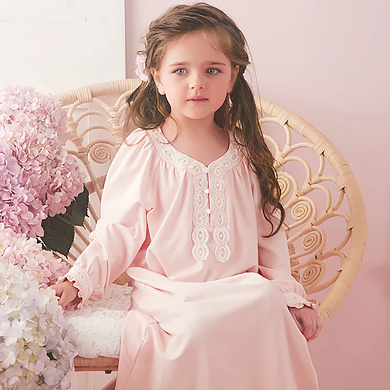 Детские стильные винтажные кружевные ночные рубашки в стиле принцессы