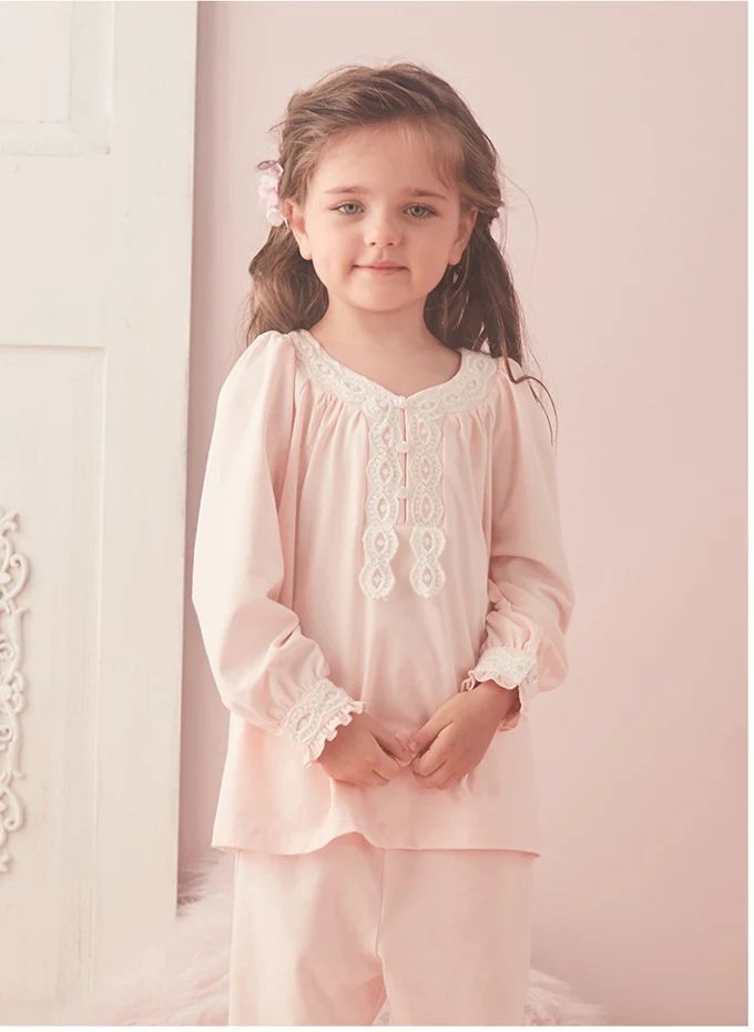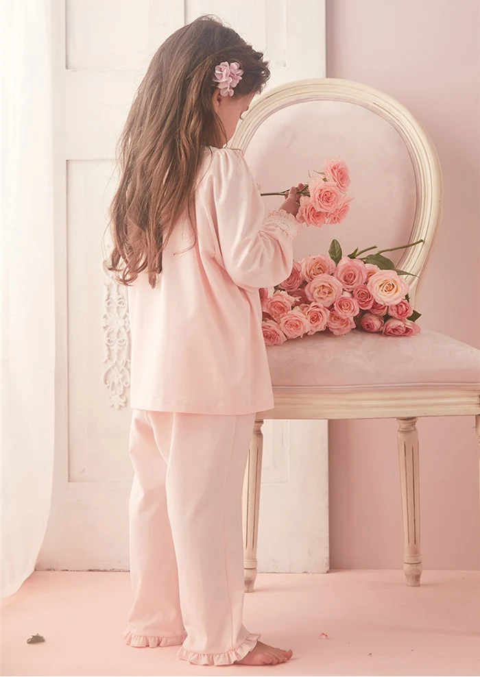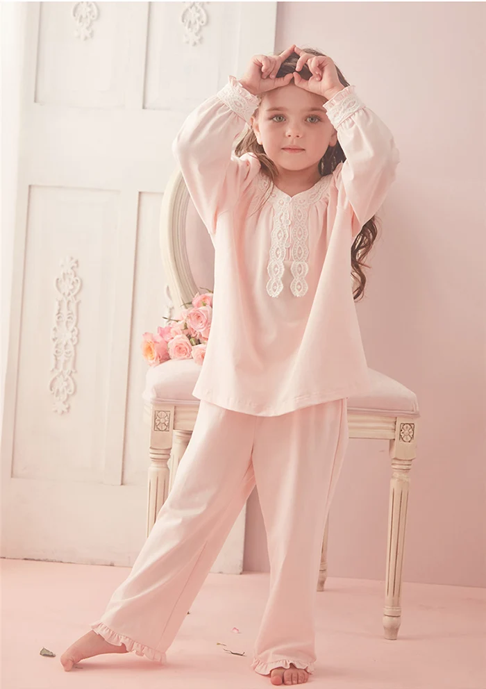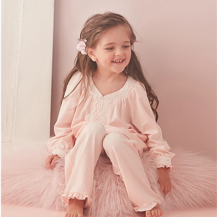 Детские розовые пижамные комплекты для девочек в стиле "Лолита", Топ с длинным рукавом и штаны, винтажный пижамный комплект с вышивкой для маленьких детей, домашняя одежда для королевского сна