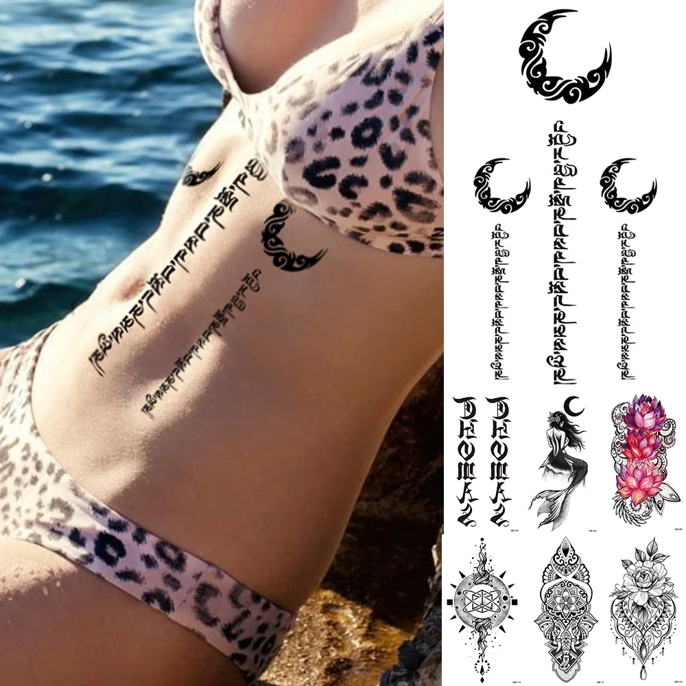 Водостойкая Временная тату-наклейка, 1 шт., луна, тотем, индийские флэш-татуировки, слива, санскрит, мандала, боди-арт, искусственная татуировка на руку для женщин и мужчин