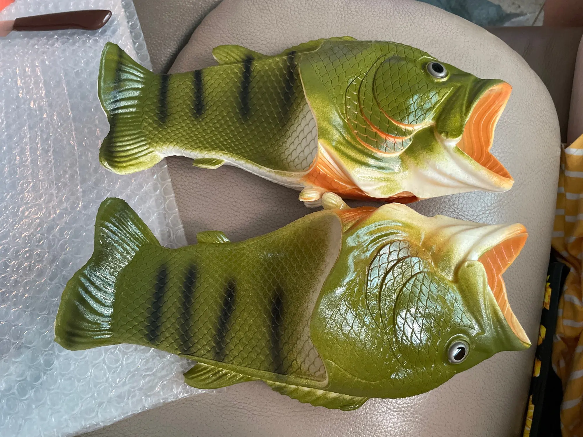 тапки класс!!! не воняют, мягкие.размер стопы 28 см. заказал 12 размер, можно было 11 заказывать...а так не особо значительно большие ( более свободные будут ) учитывайте пятку и пальцы что бы избежать ударов..