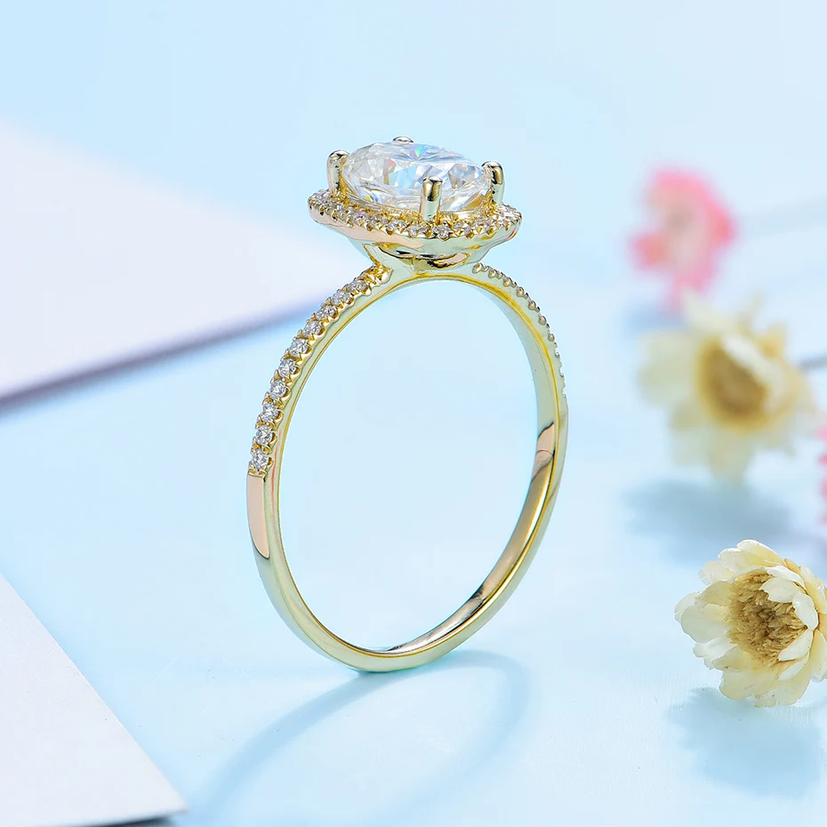 Женские кольца с натуральным моиссанитом kuolit 10K 14K, желтое золото 1,5 карат, Овальный цвет D, Пасьянс для обещания, обручальное кольцо
