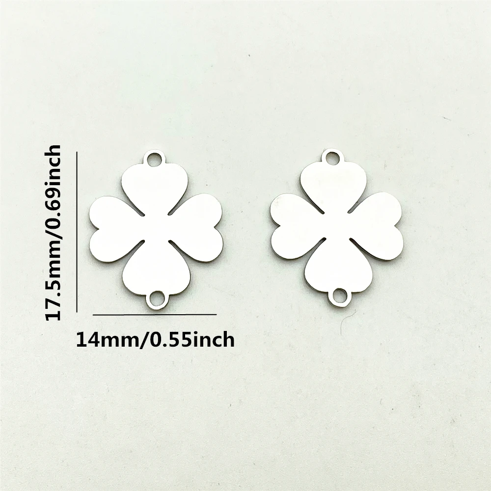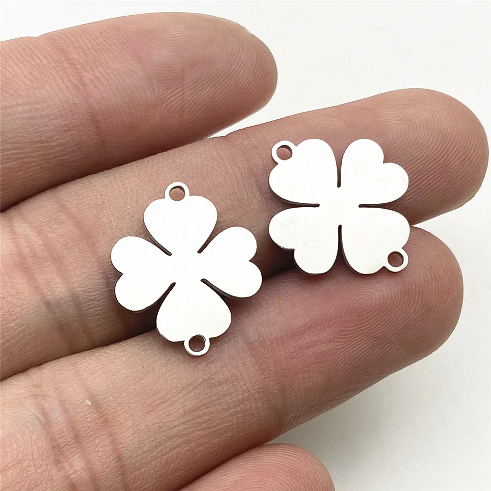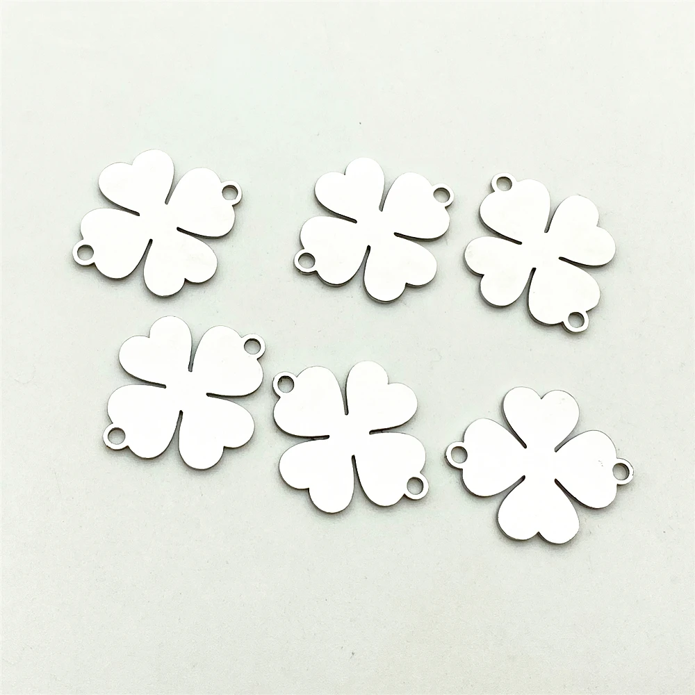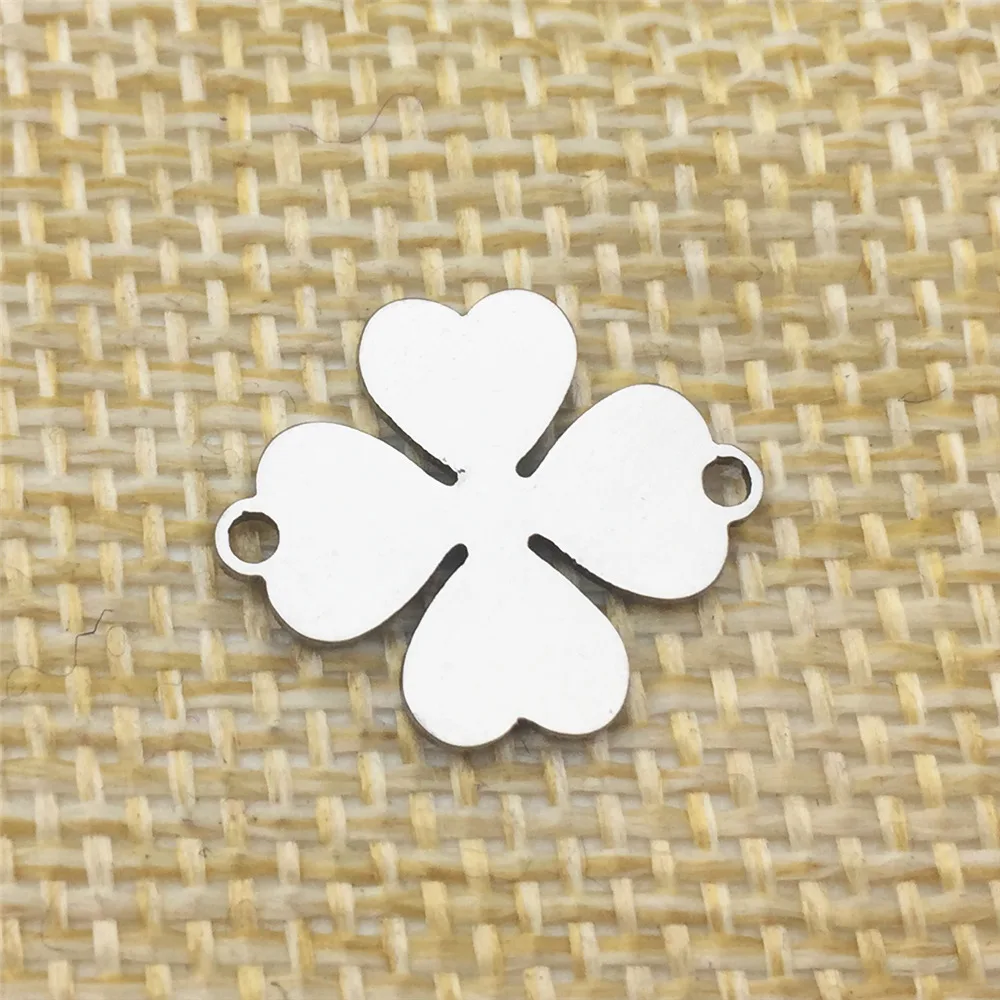 Подвески в виде четырехлистного клевера из нержавеющей стали с рисунком сердца персика для ожерелья, подвески для самостоятельного изготовления ювелирных изделий, 10 шт.