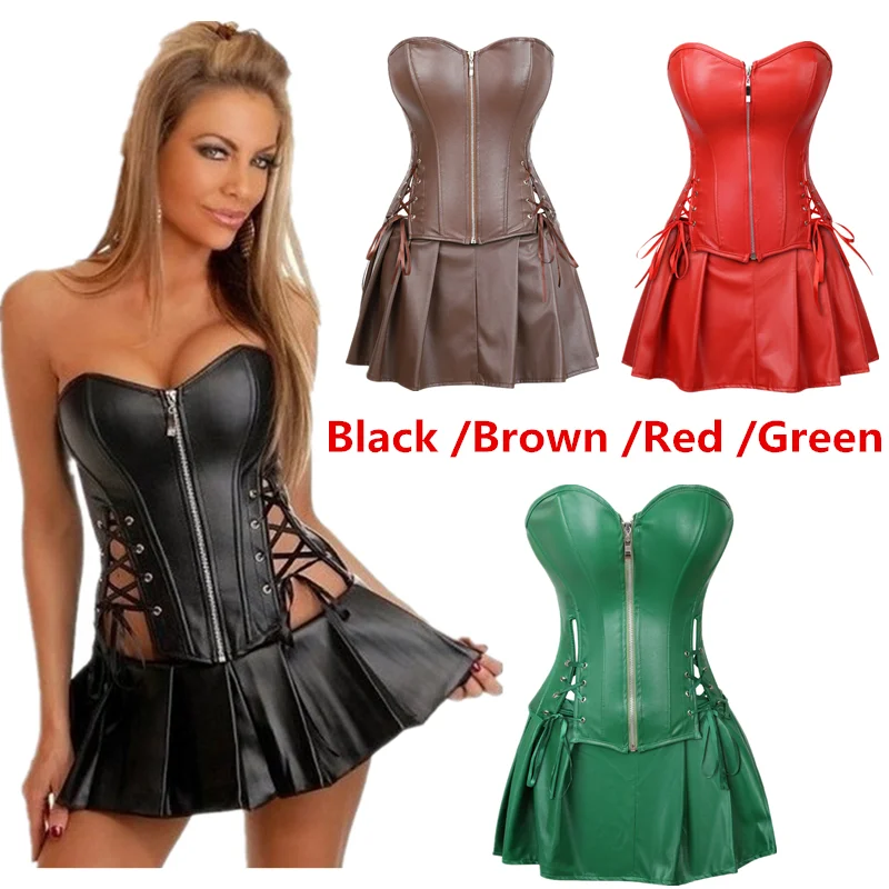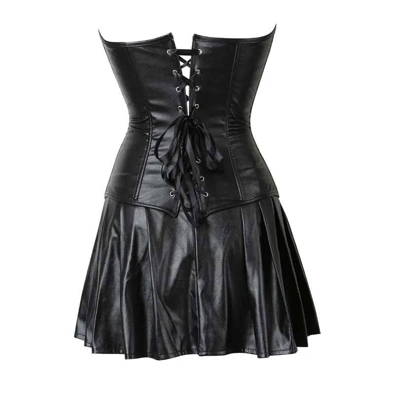 Женский корсет из искусственной кожи, короткая юбка, размера плюс, S-6XL, сексуальное платье с корсетом