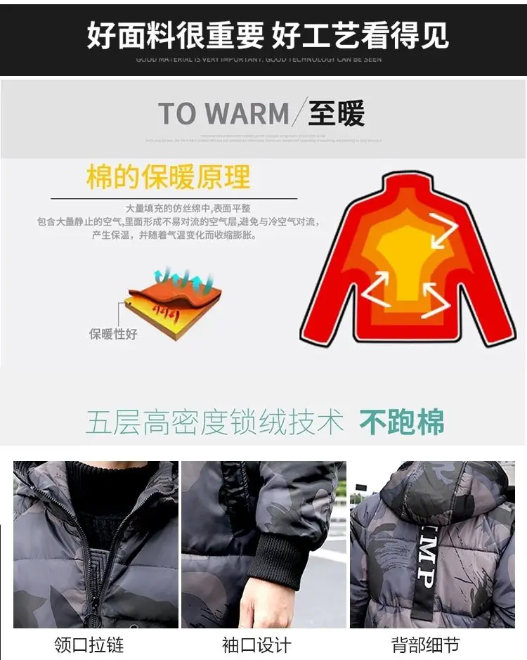 Куртка мужская зимняя из хлопка, камуфляжная, длинная