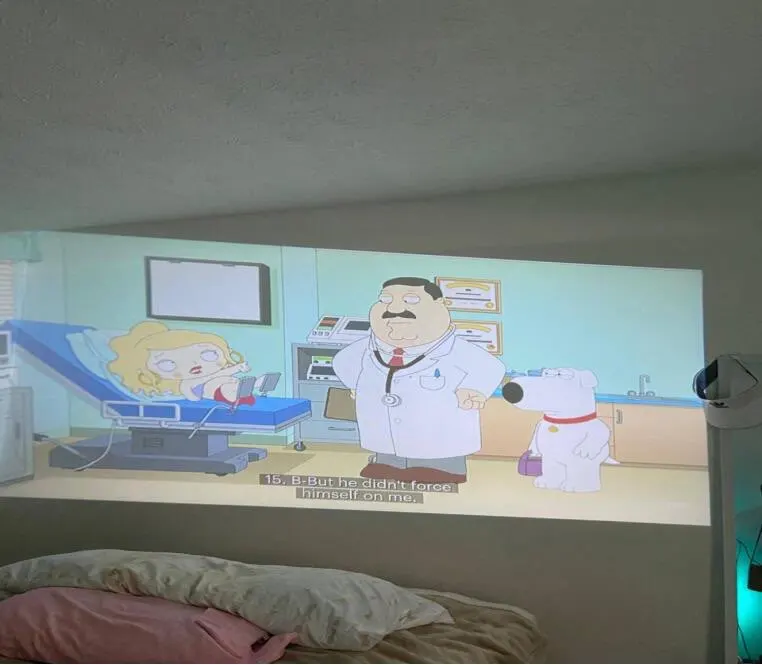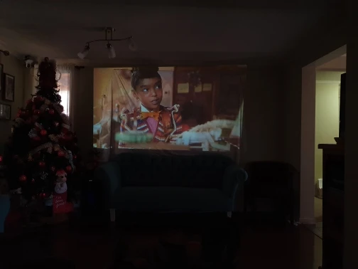 Вау, сказать, что я впечатлен этим, это занижение. Мы использовали его как домашний кинотеатр на стене с простыней, и я в шоке. Он способен создавать огромное изображение, поэтому мне пришлось свернуть проектор ближе к стене, lol. Изображение отличное!