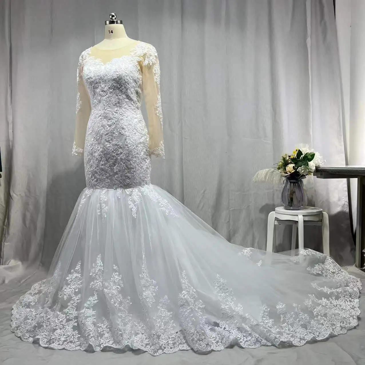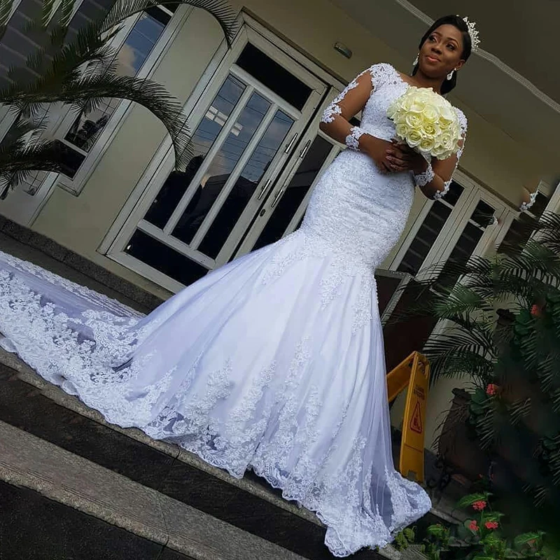 MYYBLE 2022 Иллюзия с длинным рукавом африканские Свадебные платья Русалка Кружевная аппликация Труба Свадебные платья со шлейфом Свадебные платья