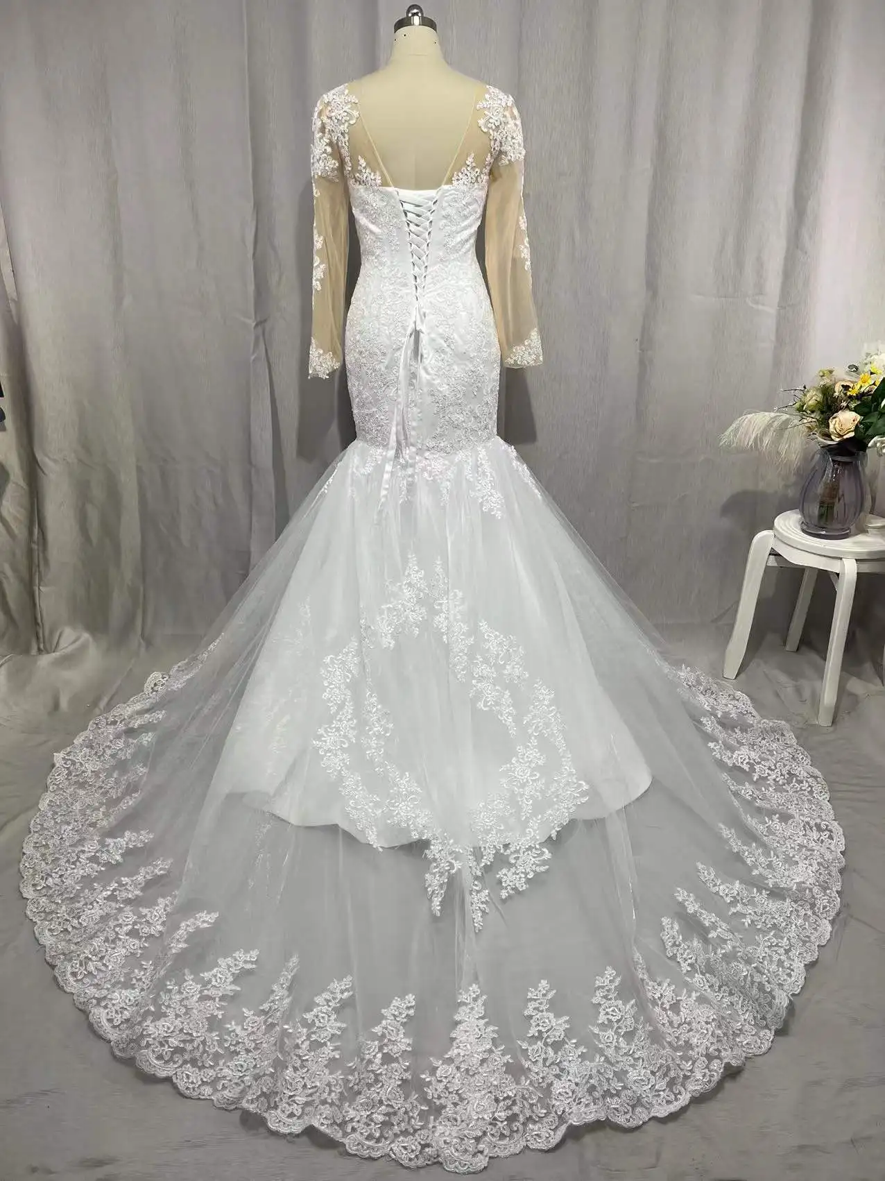 Роскошное кружевное свадебное платье MYYBLE 2021 с длинным рукавом ...