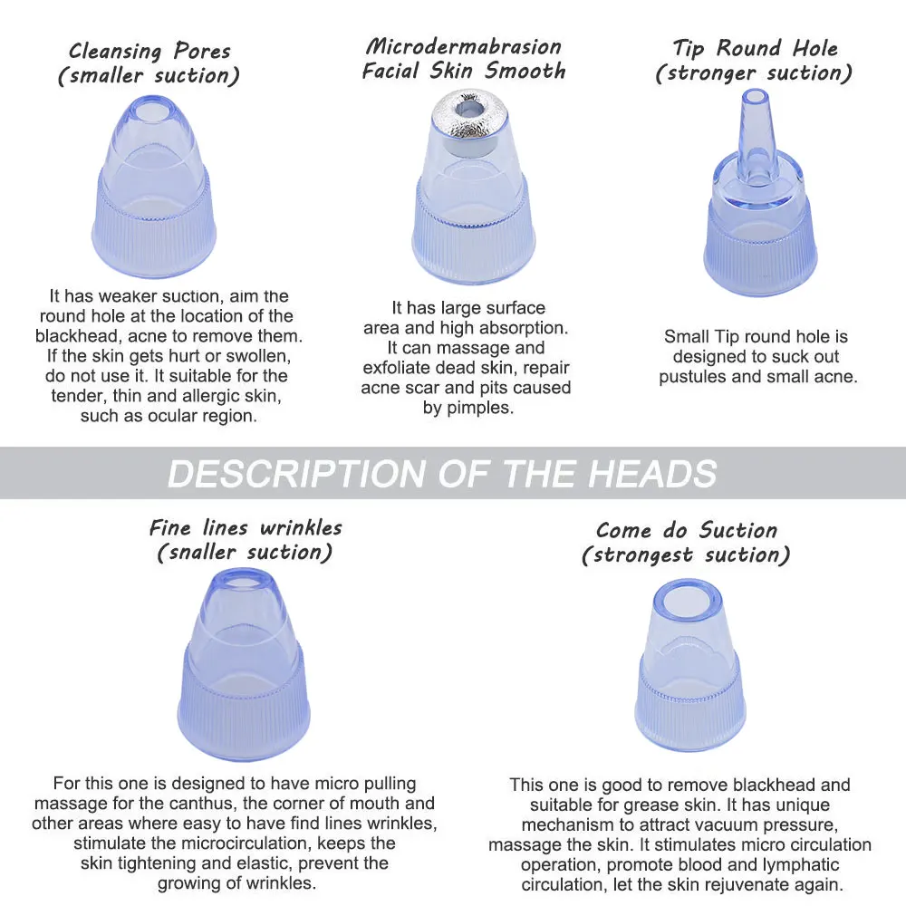 Аппарат вакуумный для удаления черных точек на лице, 5 сменных точе...