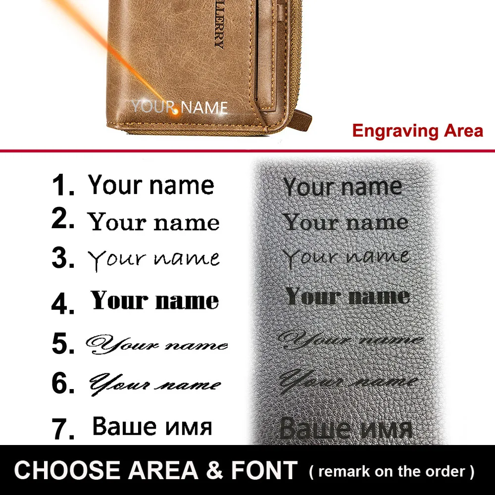 Мужские кошельки с бесплатной гравировкой имени, однотонные мужские бумажники на молнии с держатель для карт, кармашком для мелочи, 2020