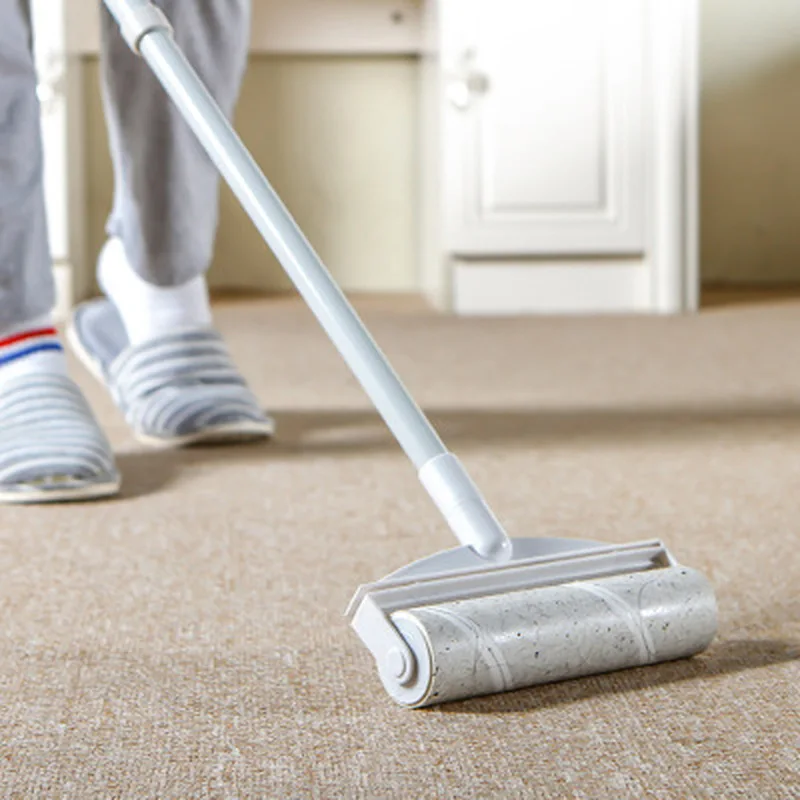 Ролик для удаления волос с длинной ручкой, швабры для пола, приспособление для удаления волос с одежды и ковров, ручной липкий Очищаемый пылесборник