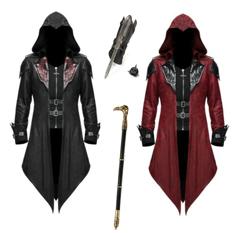 Мужская куртка с капюшоном, с длинным рукавом, в готическом стиле