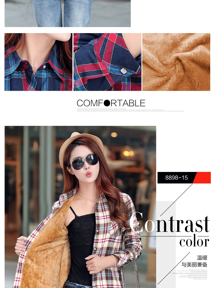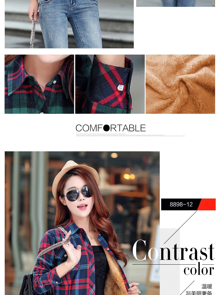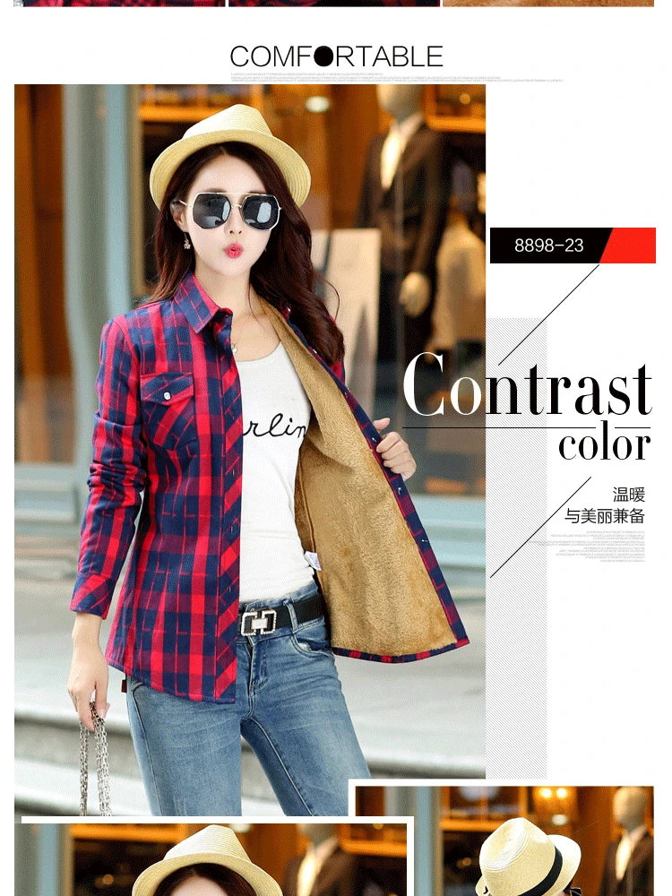 Женские зимние бархатные рубашки, Клетчатая блузка, женские корейские толстые кардиганы, фланелевые женские хлопковые топы