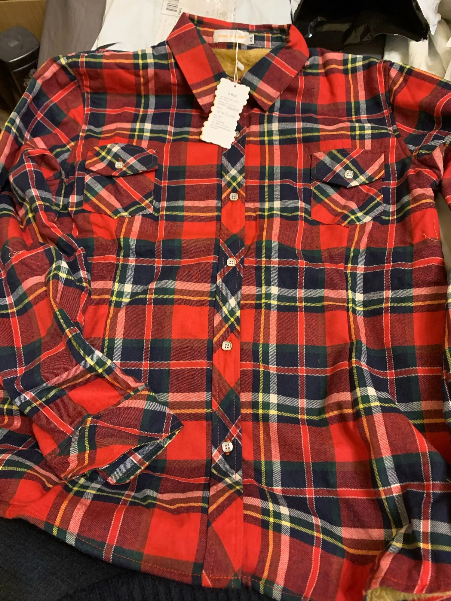 Цвет несколько другой, более приглушенный, манжеты и шея имеют ту же ткань сзади, внутренняя ткань похожа на вышитые, теплые и мягкие плюшевые игрушки. Вы должны гладить после стирки, он очень морщинистый, рубашки этого стиля, у которых тонкий оранжевый внутренний форум флиса, не имеют этой проблемы, и их внешний вид намного лучше.