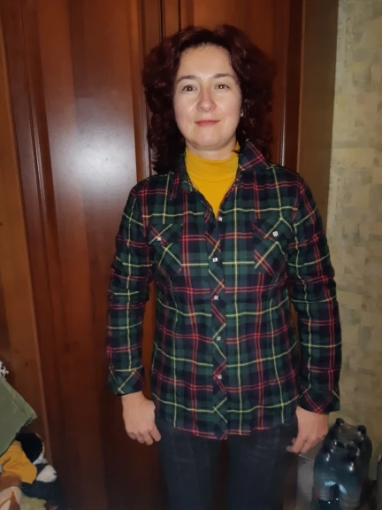 Заказала уже несколько таких рубашек. Очень нравится - теплая, приятная, удобная. Супер. На российский размер S беру L. После первой стики немного садится ткань.