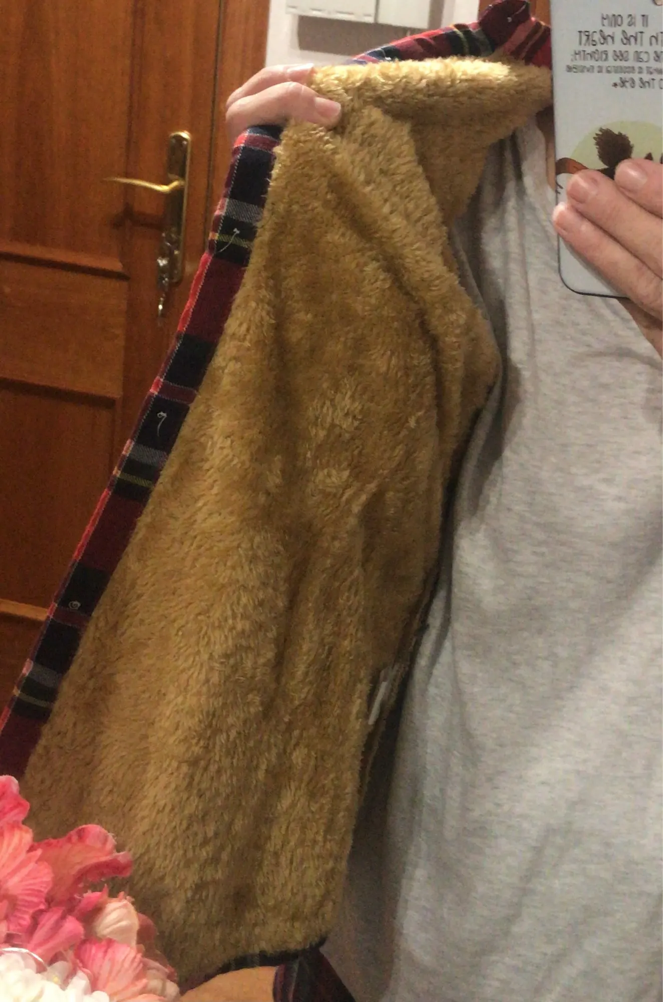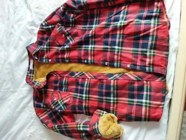 На фото выглядит привлекательнее, меховая подкладка гуще. В реальности это не такая уж и тёплая рубашка. Да, с подкладкой, но жиденькой. Крой далёк от идеала. Слишком на тонкие руки рукава при большом размере. Доставка быстрая