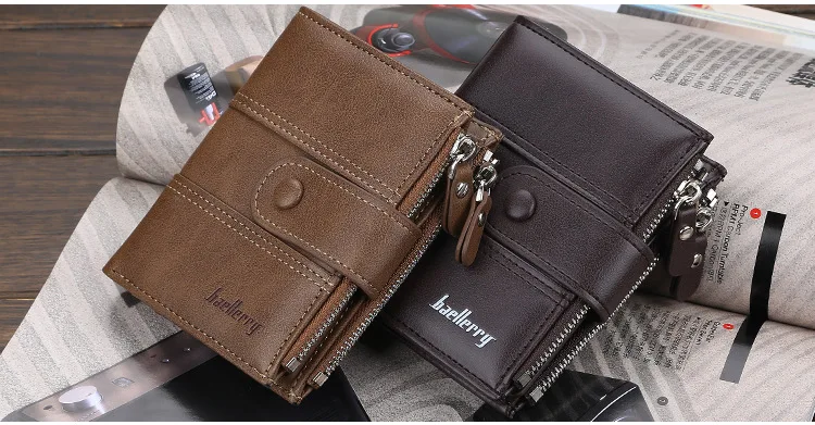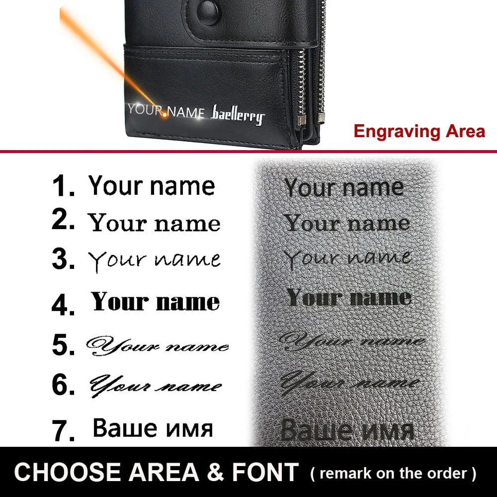 Мужские кошельки с бесплатной гравировкой имени, Двойные Держатель для карт на молнии, высококачественные мужские бумажники, винтажный держатель для монет, мужские бумажники, 2020