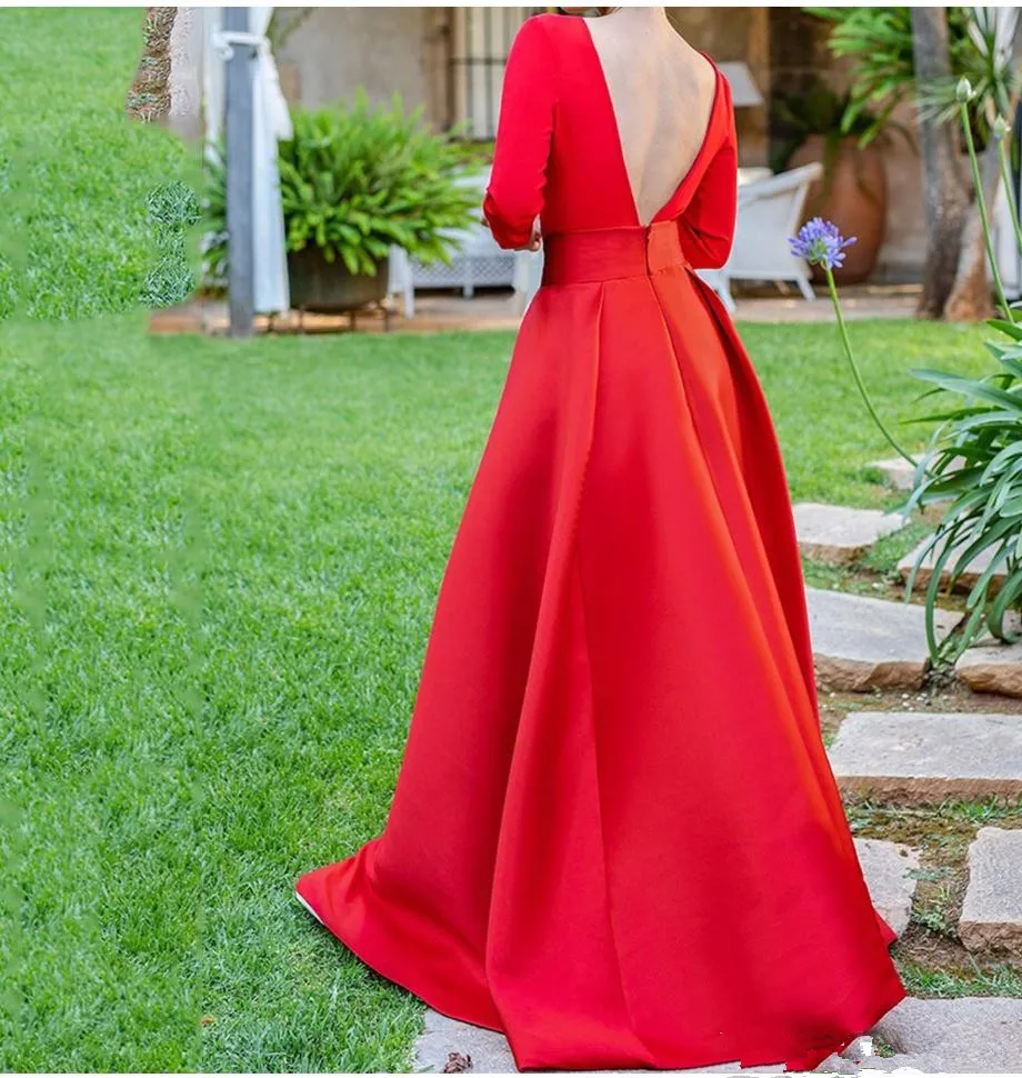 Красное вечернее платье-комбинезон с длинным рукавом, модель 2020 года, современное платье с V-образным вырезом для выпускного вечера, брючный костюм со съемным шлейфом