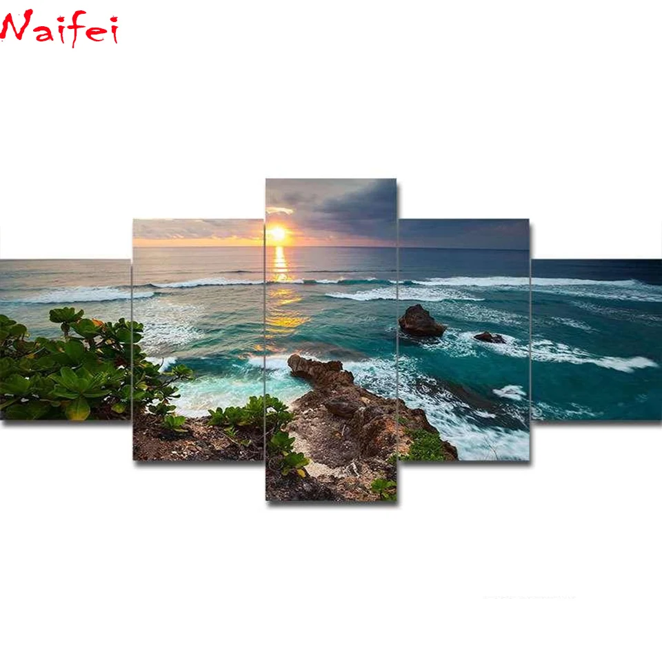 5 шт. полный квадрат/круглая дрель 5D DIY Алмазная картина "пляж вид на море" мульти-картина комбинация 3D вышивка восход пейзаж Декор