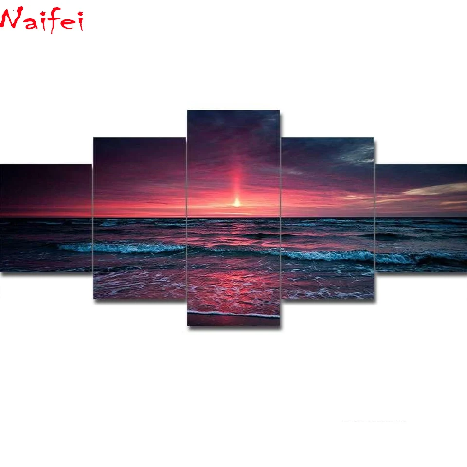 5 шт. полный квадрат/круглая дрель 5D DIY Алмазная картина "фиолетовый морской пейзаж" мульти-картина комбинация 3D вышивка восход пейзаж Декор