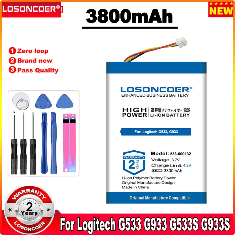 Аккумулятор LOSONCOER 3800mAh 533-000132 для аккумуляторов Logitech G533 G933