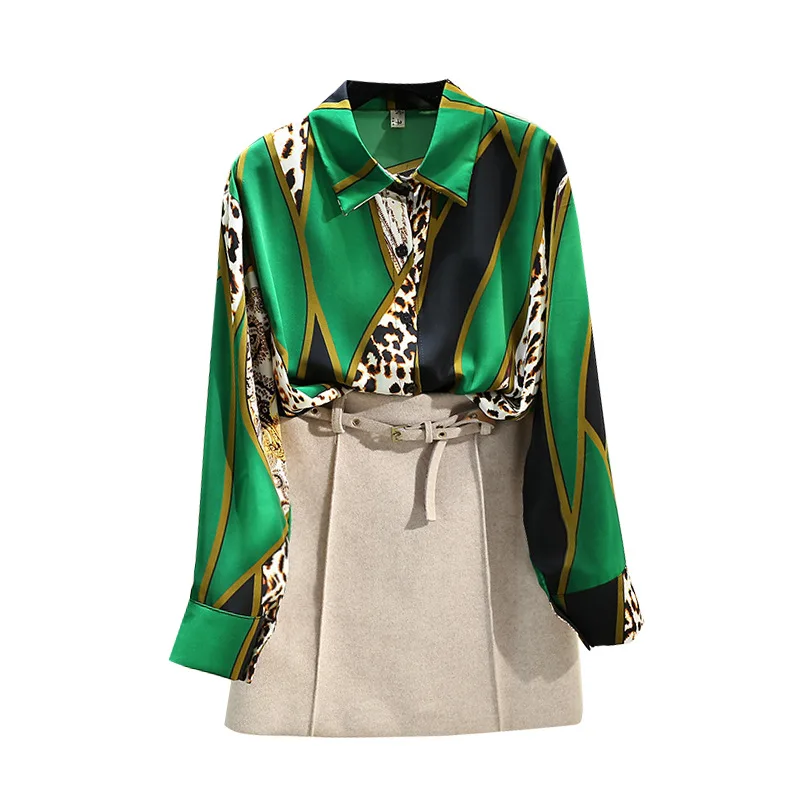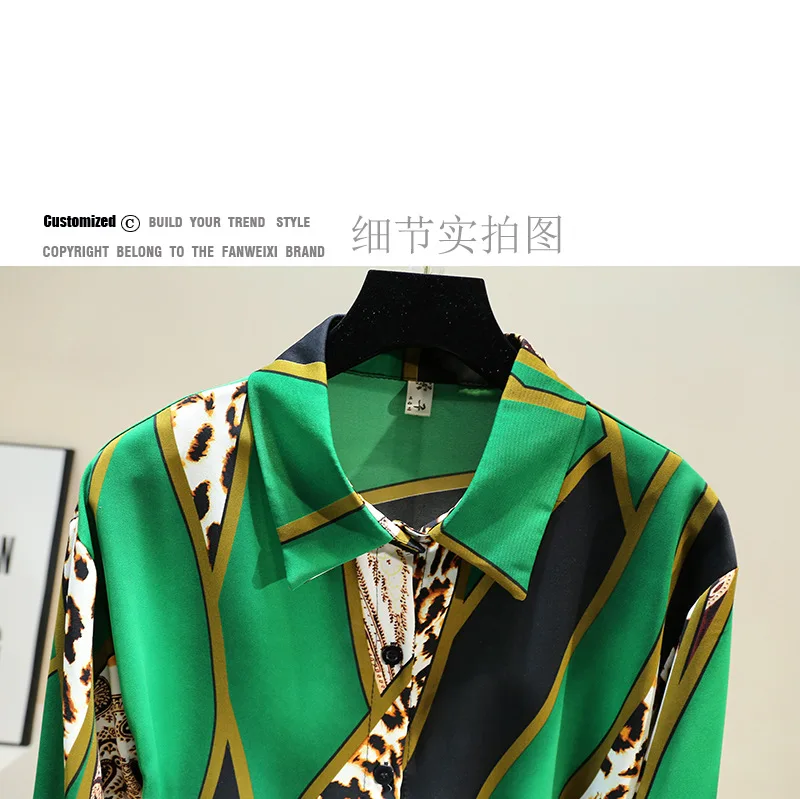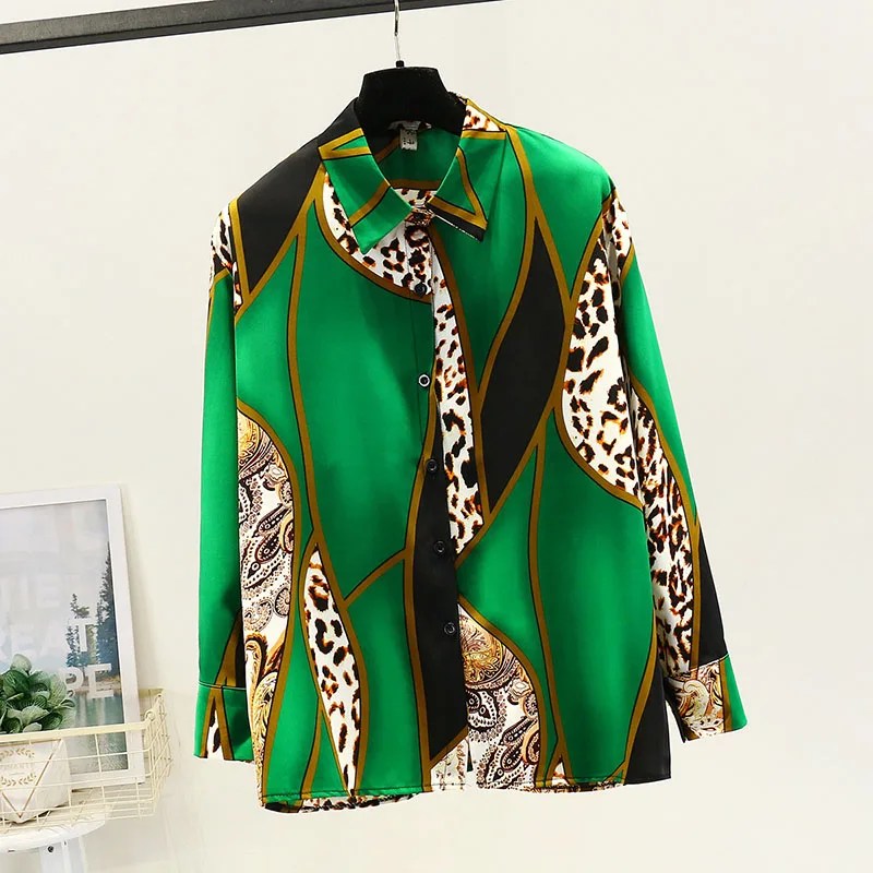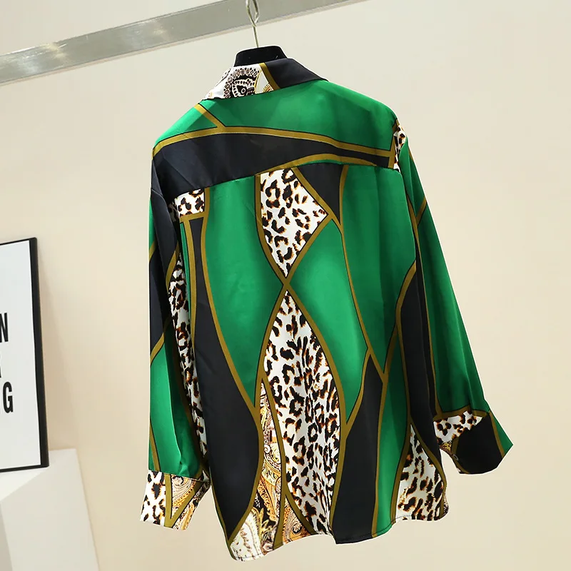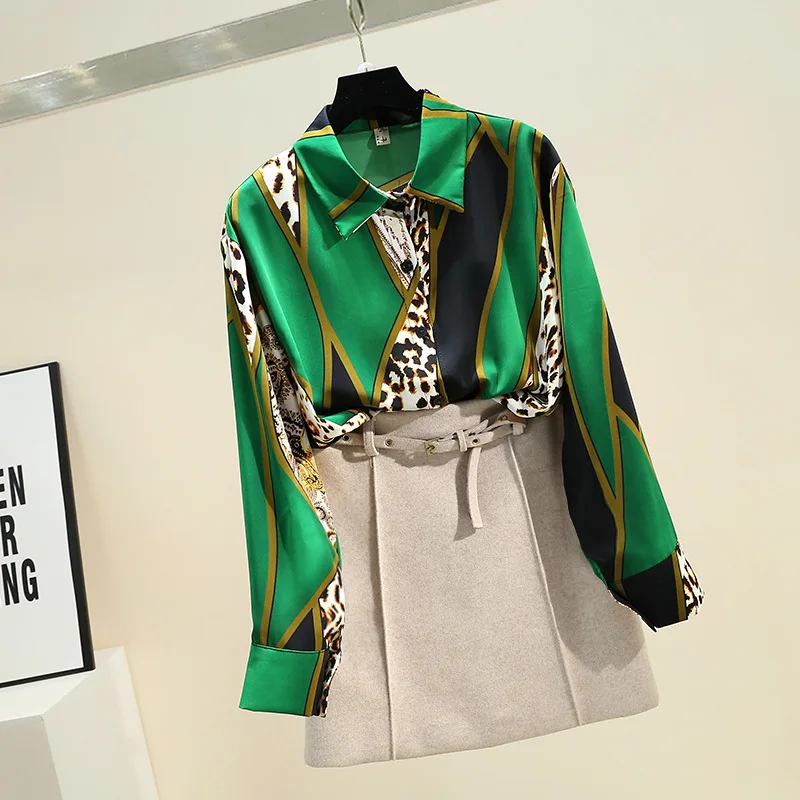 Женская свободная рубашка в Корейском стиле, шифоновая блузка контрастных цветов с леопардовым принтом и длинными рукавами в стиле ретро, GD271, весна-осень