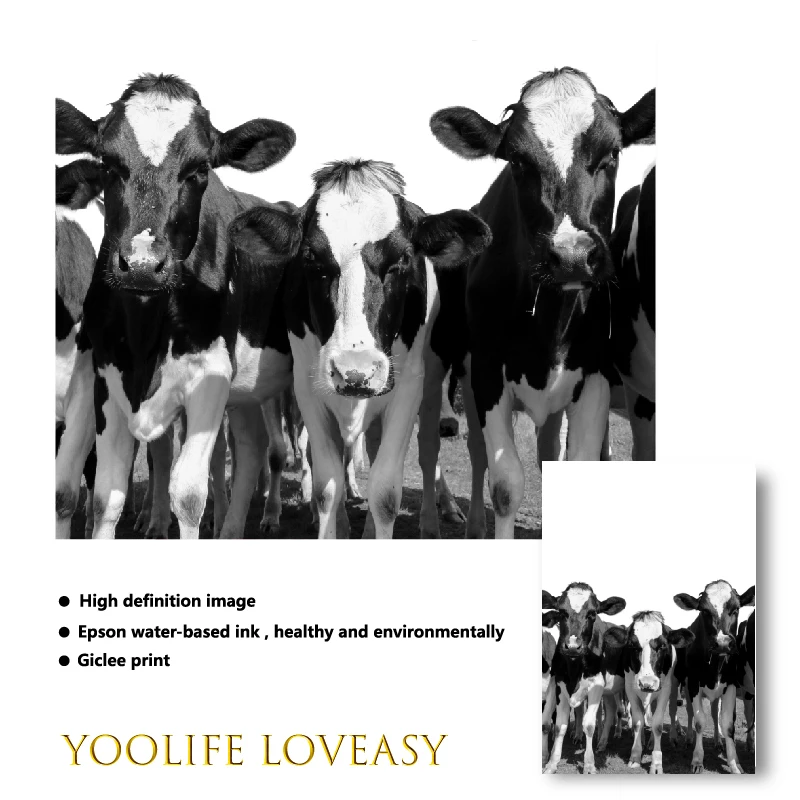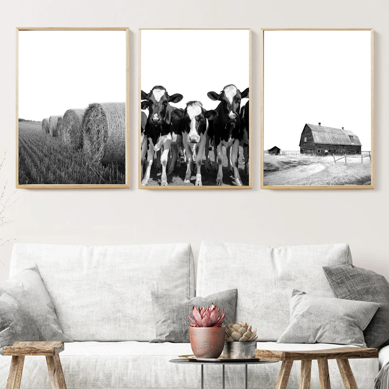Сельскохозяйственных животных корова черный, белый цвет фотографии Плакаты и принты сарай сена настенный художественный холст картины кухонное украшение для дома