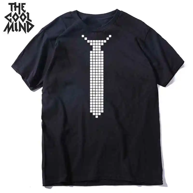 COOLMIND 100% хлопковая повседневная мужская футболка с коротким рукавом и забавным принтом, летняя свободная Мужская футболка с принтом галстука, Мужская футболка с круглым вырезом, Мужская футболка