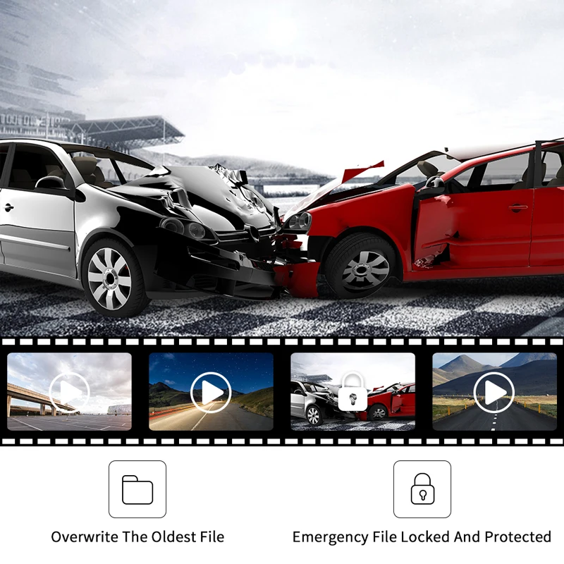 Блокировка столкновенияОригинальное видео будет автоматически заблокировано и сохранено во время вождения, например, торможение или столкновение, и не будет покрыто круговым видео.