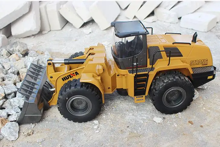 Особые характеристики: 10-канальный инженерный автомобиль с дистанционным управлением с функциями движения вперед, назад, рулевого управления и нажима ковша. Автомобиль весит 10 кг, а нагрузка на ковш составляет 1,5 кг.