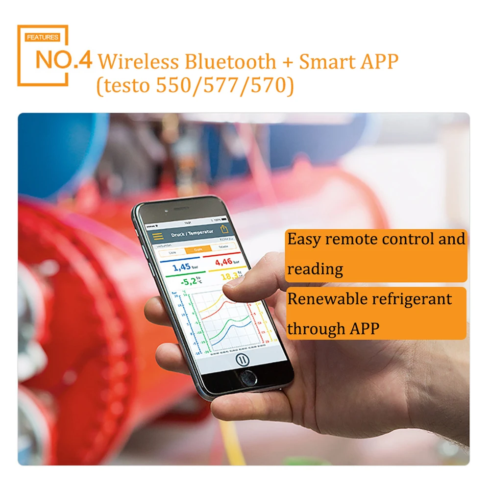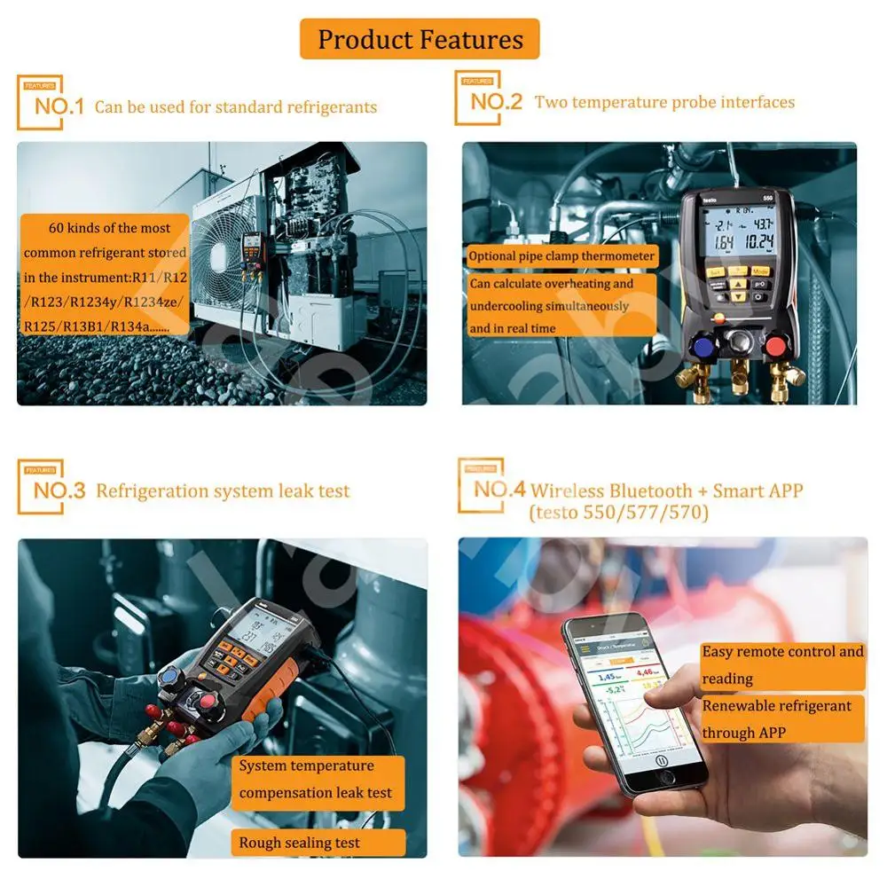 Новый цифровой манометр Testo 550 с 2 хомутами, 2 клапанами, система для HVAC 0563 1550, встроенные 60 распространенных хладагентов