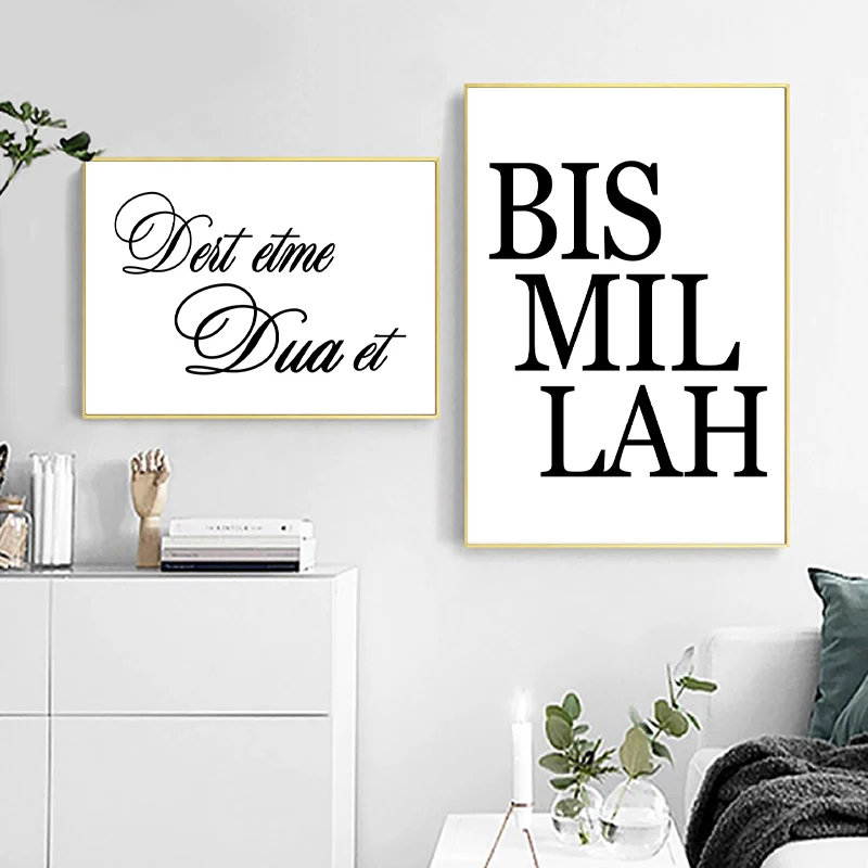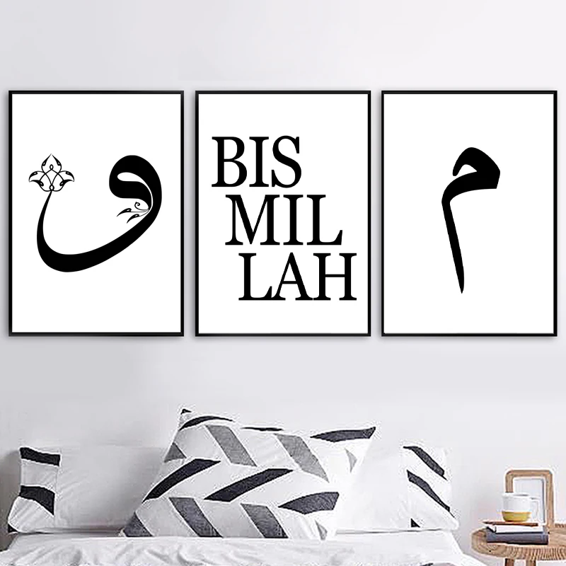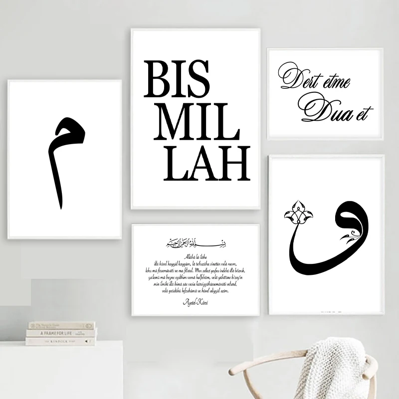 Исламская Сабра стена Аллаха художественные постеры и принты на холсте иншаллах Бисмиллах художественная живопись черные белые настенные картины Домашний декор