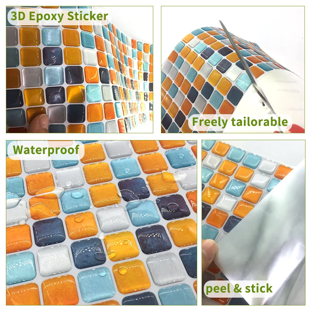 Самоклеящаяся кухонная панель из фольги для ванной комнаты, наклейки для плитки, 3D мозаичные обои, палочка для очистки, виниловый водонепроницаемый Декор