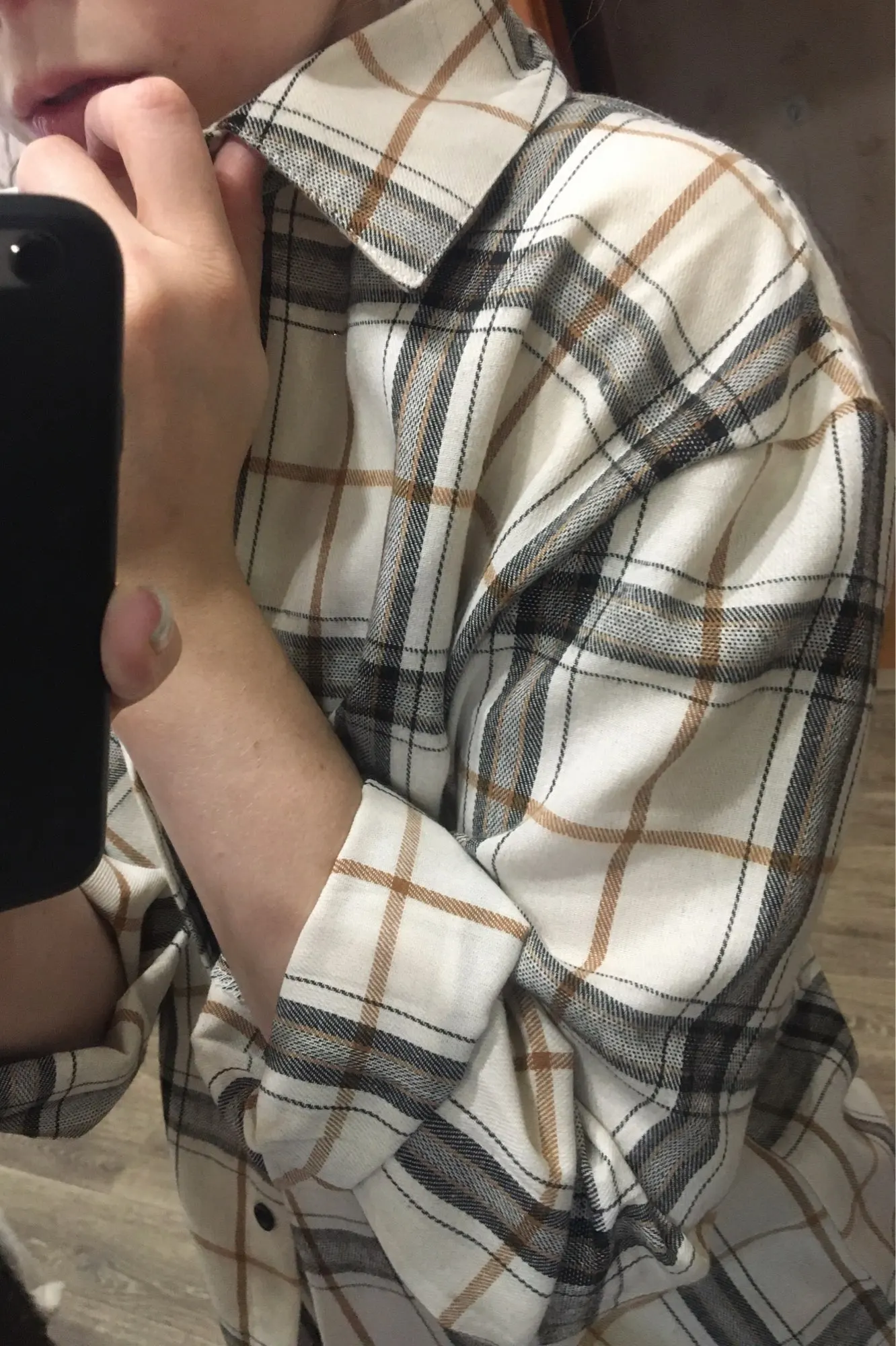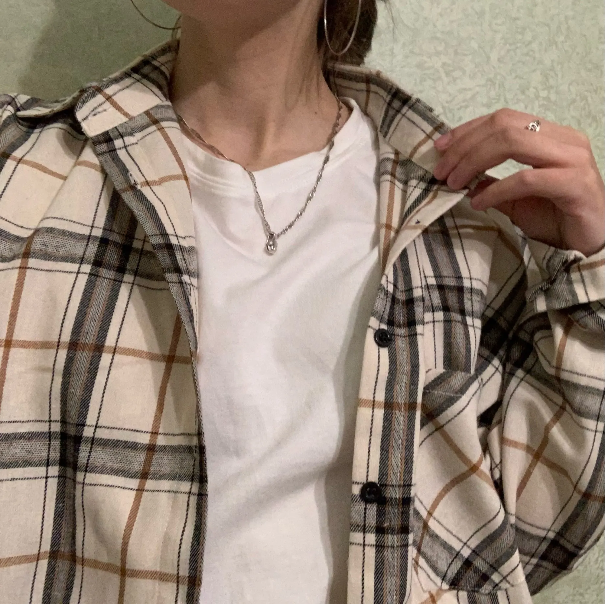 Рубашка классная, плотная, цвет освежает. Но. Размер М на мой М да оверсайз, плечи огромные, рукава длинющие, на 50 размер тоже подойдёт. Я конечно хотела оверсайз но не на столько.