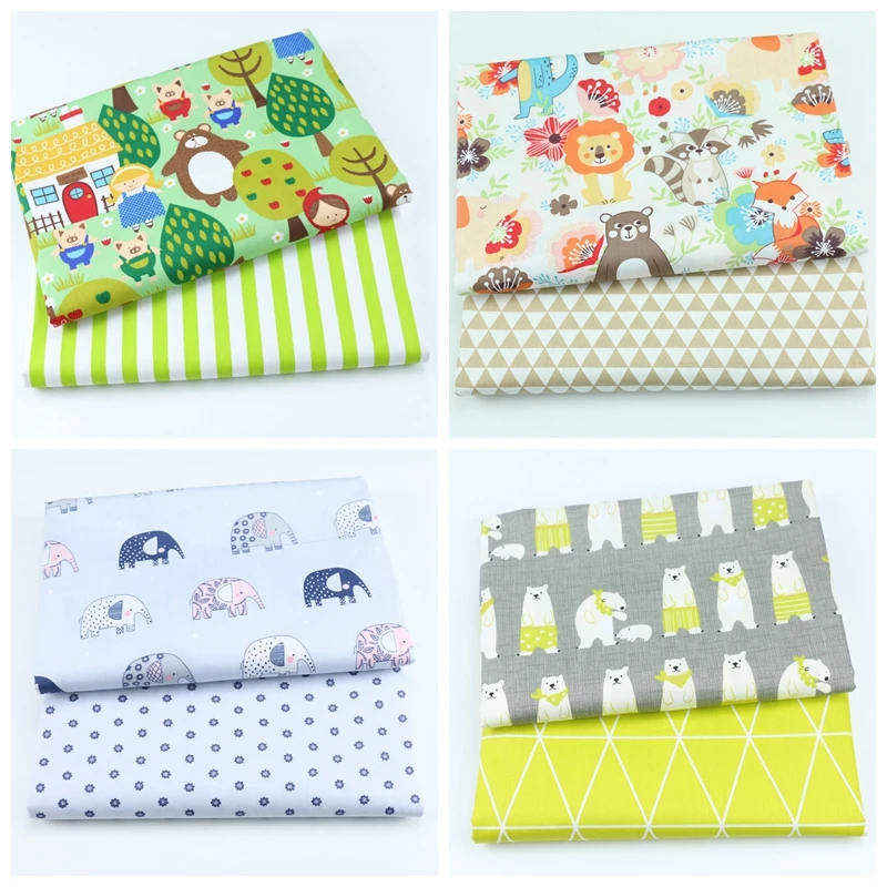 2 шт единорог, медведь Животные Хлопок Twill текстильная ткань пачка для ребенка Лоскутная стеганая Толстая четвертья DIY швейная ткань