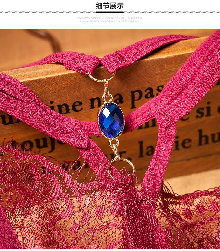 Кружевные сексуальные кружевные трусики с кристаллами и подвеской, ...