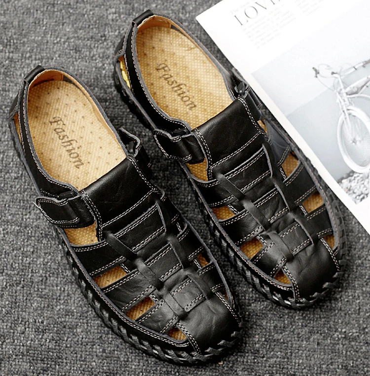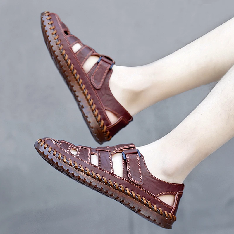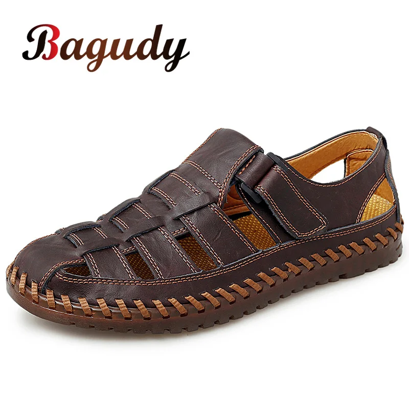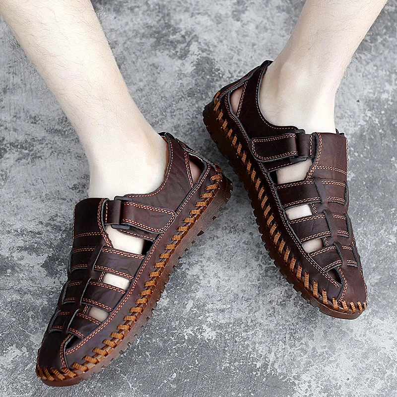 Мужские пляжные сандалии, из натуральной кожи, дышащие сандалии, большие размеры 39-47, для лета, 2020
