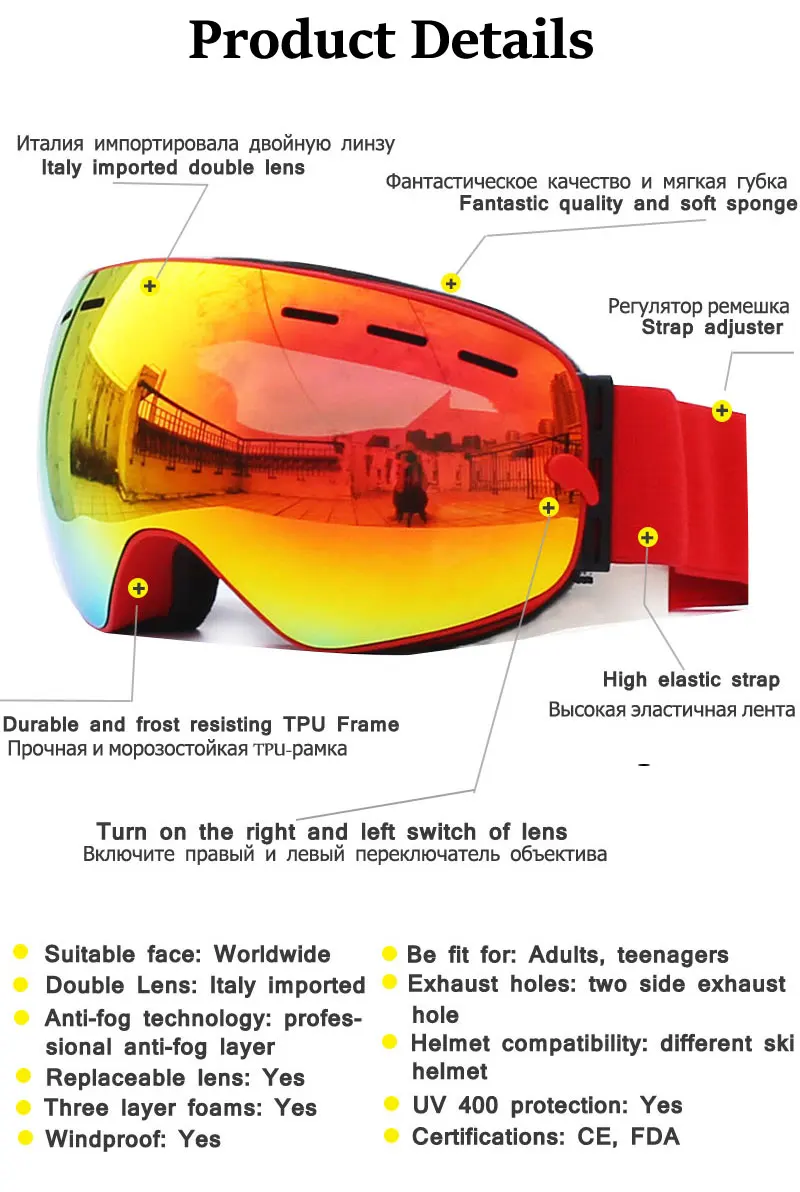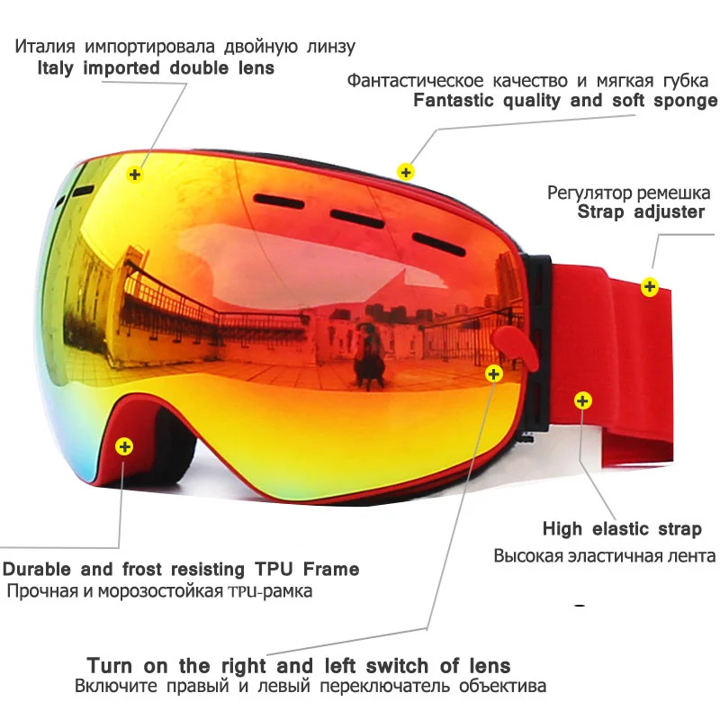 Антизапотевающие лыжные очки UV400, лыжные двухслойные очки для катания на лыжах и сноуборде, лыжные очки с одной изящной осветляющей линзой