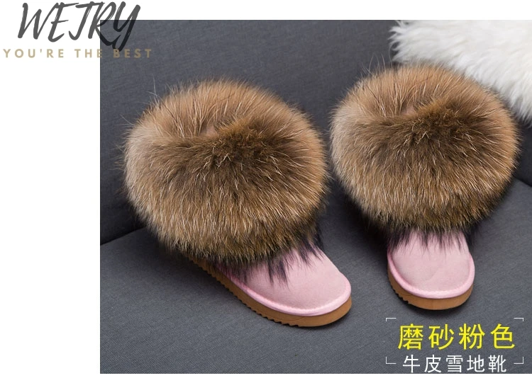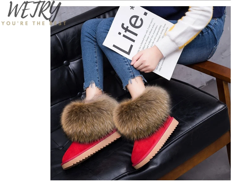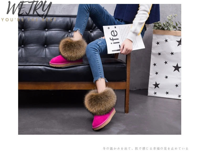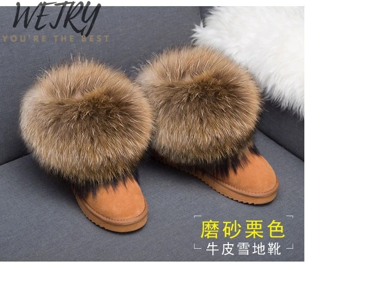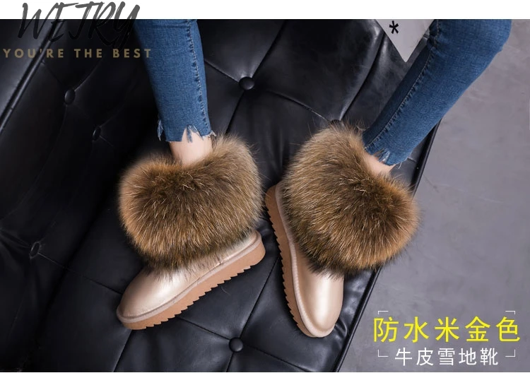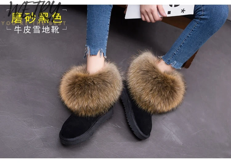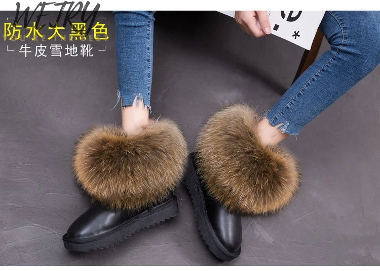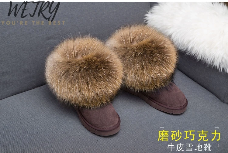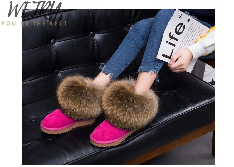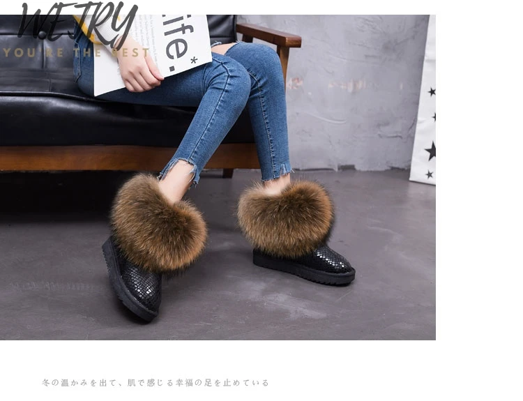 WETRYРоскошные зимние ботинки; ботинки с натуральным лисьим мехом; водонепроницаемые ботинки из натуральной замши; ботинки из коровьей кожи; женские полусапоги на нескользящей подошве