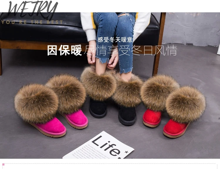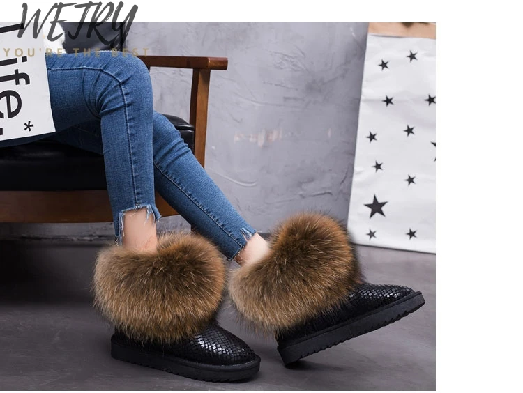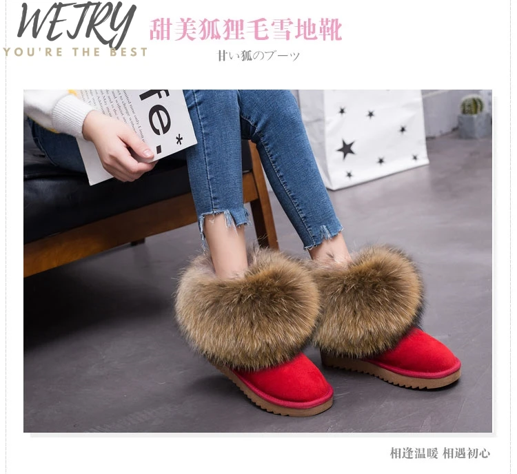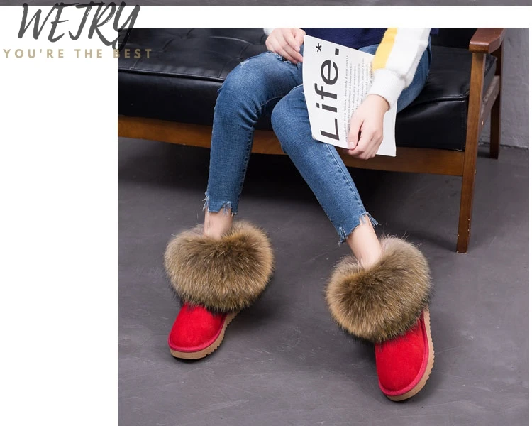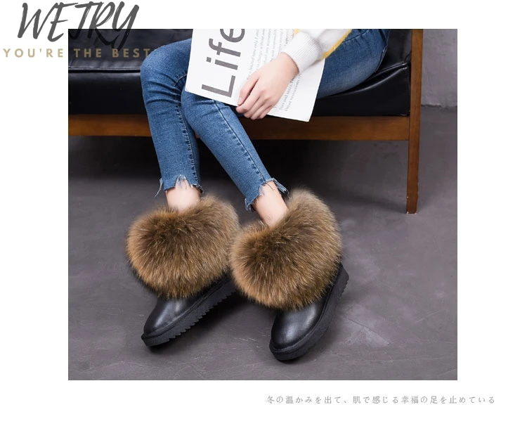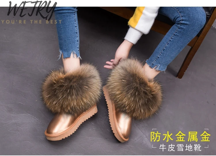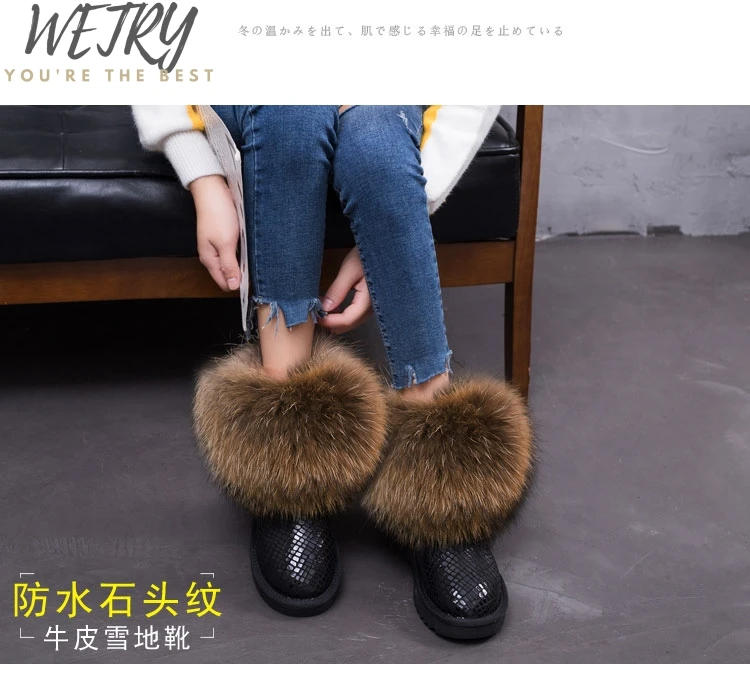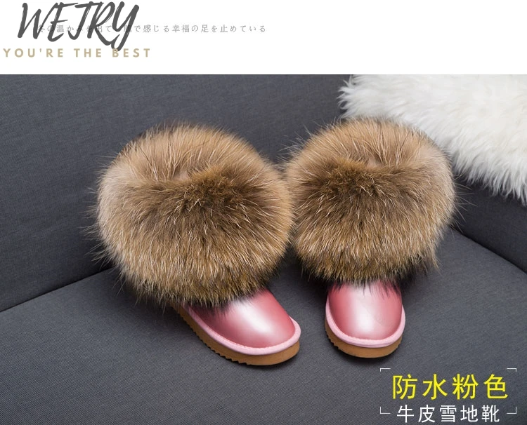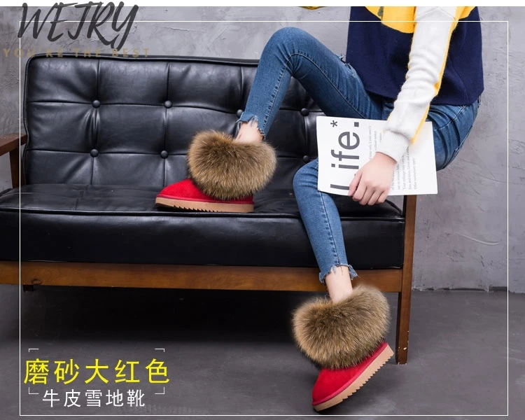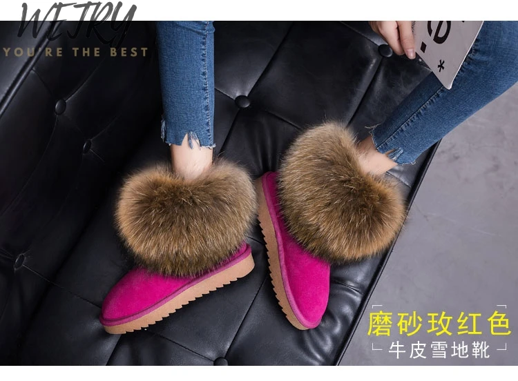 WETRYРоскошные зимние ботинки; ботинки с натуральным лисьим мехом; водонепроницаемые ботинки из натуральной замши; ботинки из коровьей кожи; женские полусапоги на нескользящей подошве