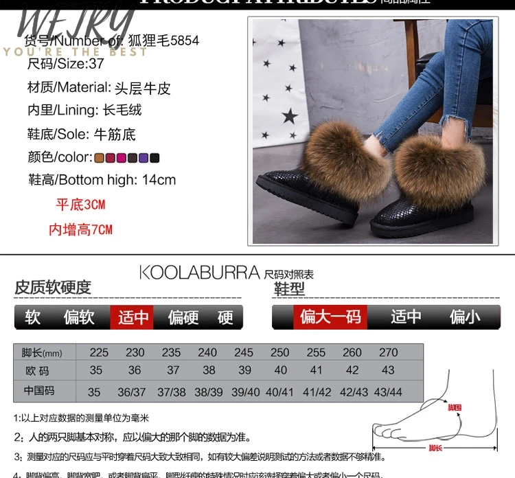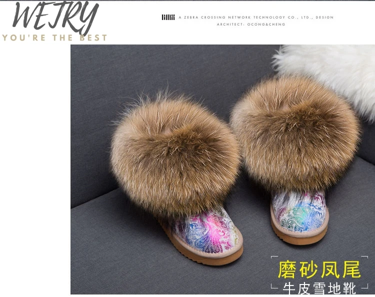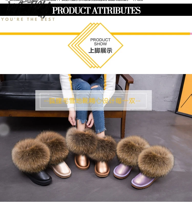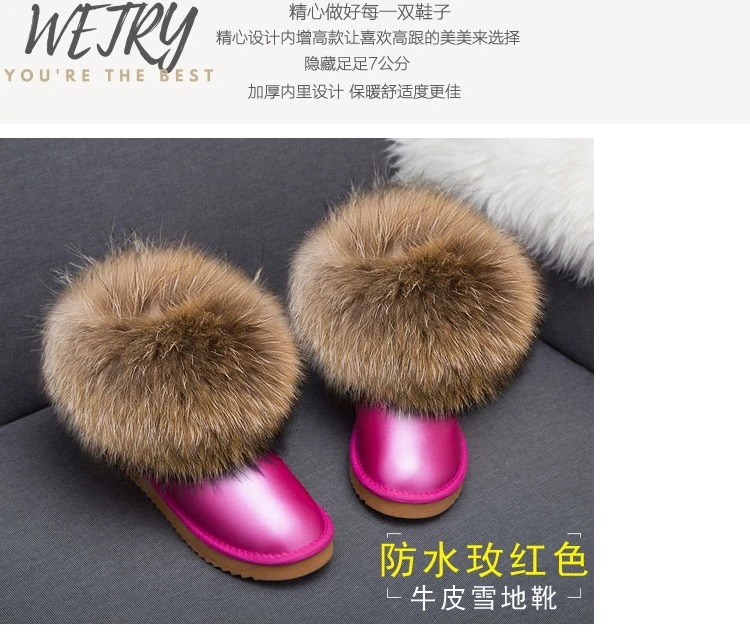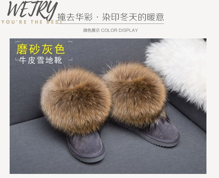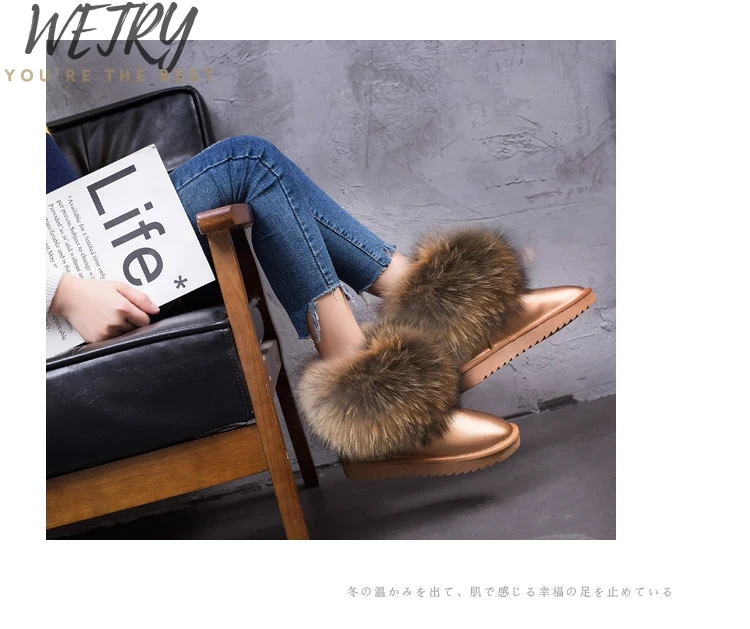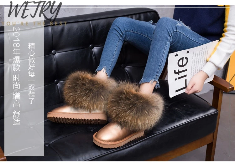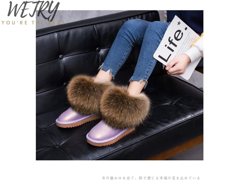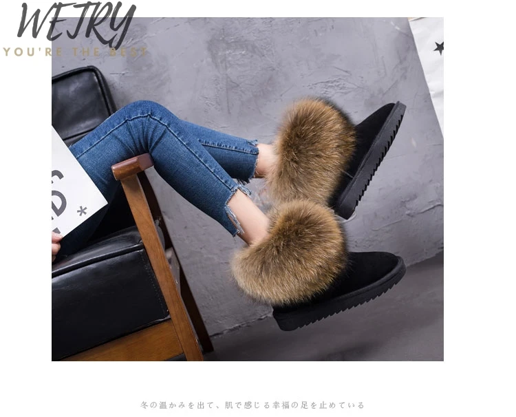 WETRYРоскошные зимние ботинки; ботинки с натуральным лисьим мехом; водонепроницаемые ботинки из натуральной замши; ботинки из коровьей кожи; женские полусапоги на нескользящей подошве