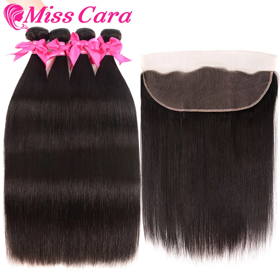 Прозрачный кружевной фронтальный с пучками малайзийских прямых волос с фронтальным 100% Miss Cara Remy человеческие волосы с закрытием