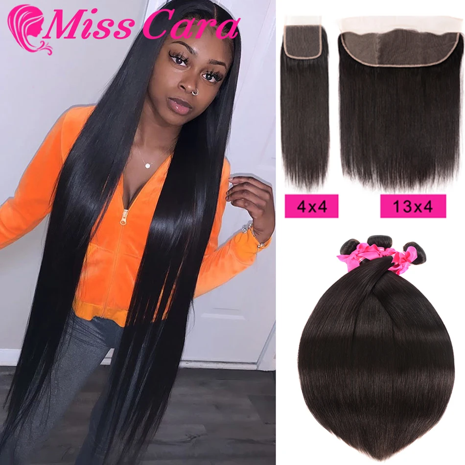 Перуанские прямые волосы в пучках с застежкой 4x4, волосы Miss Cara...