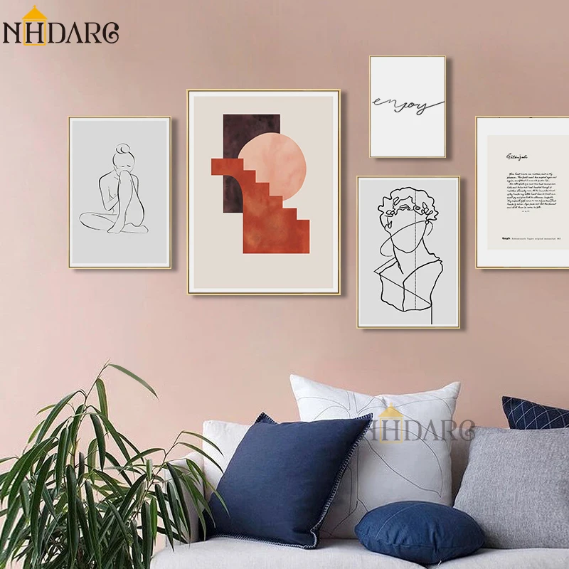 Абстрактные линии персонажа цитаты холст печать живопись плакат Нас...