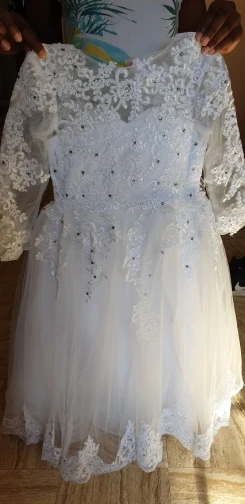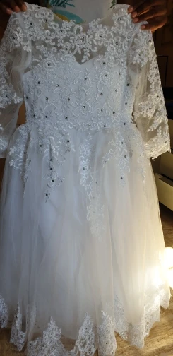 Платье для девочки цвета слоновой кости, с длинным рукавом и круглым вырезом