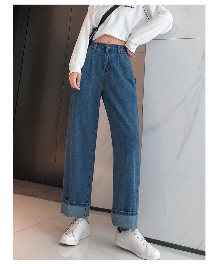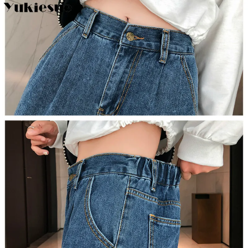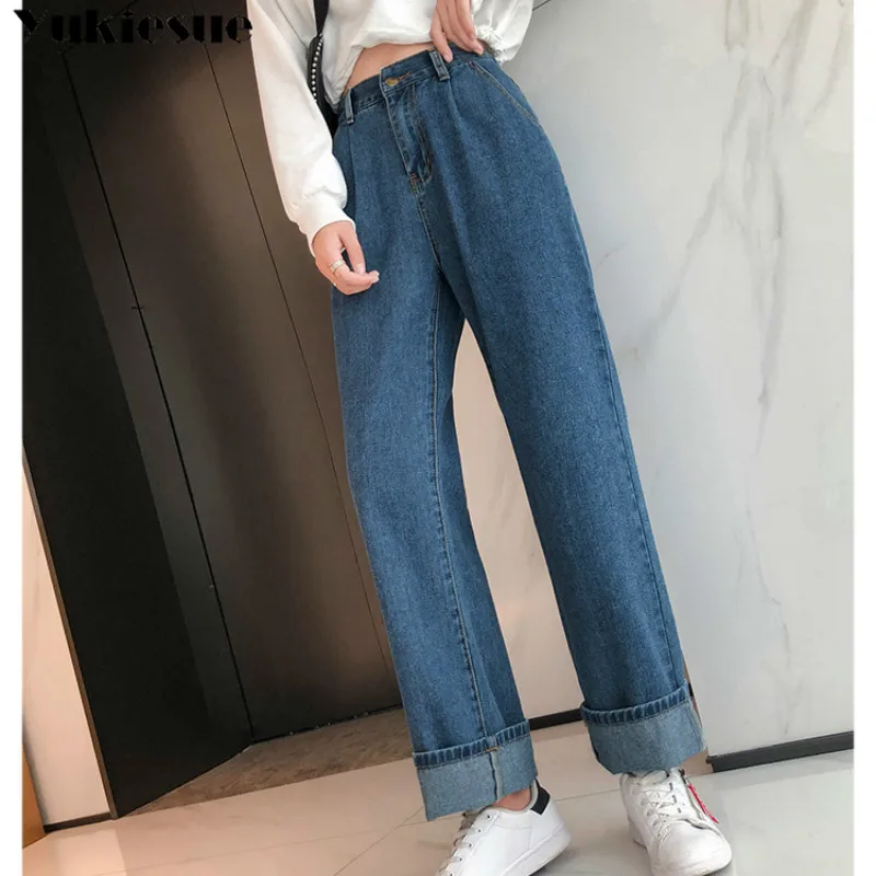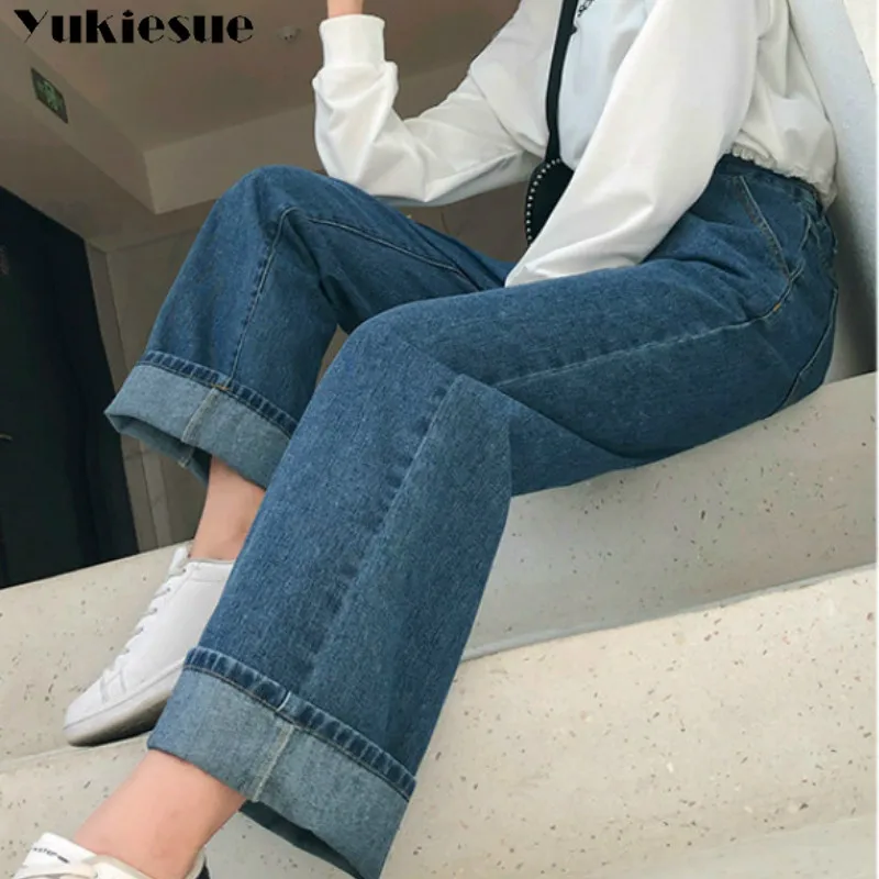 Женские джинсы, женские брюки, женские свободные винтажные джинсы с высокой талией и широкими штанинами, женские джинсы в полную длину в Корейском стиле размера плюс 5XL