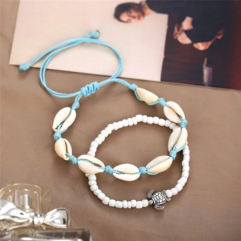 Ножные браслеты в богемном стиле женские, анклеты из ракушек для но...