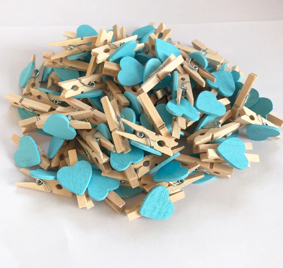 200 шт.лот, разноцветные деревянные клипсы с сердечками 3x0,4 см, п...