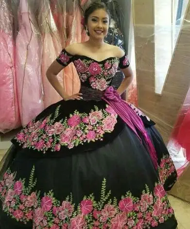 Платье с вышивкой и открытыми плечами для девушек, пышная юбка с аппликацией, бальное платье для выпускного вечера, 2020